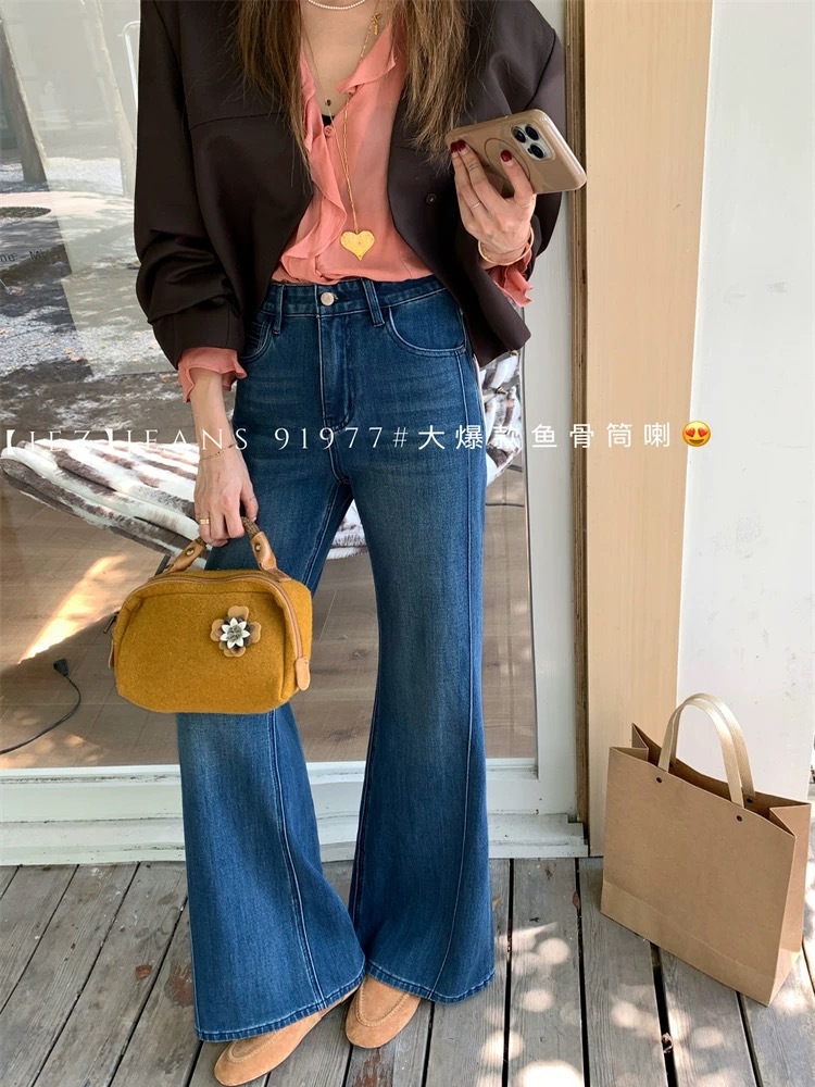 2025年秋新款喇叭牛仔裤四面弹显瘦不贴腿拖地长裤女