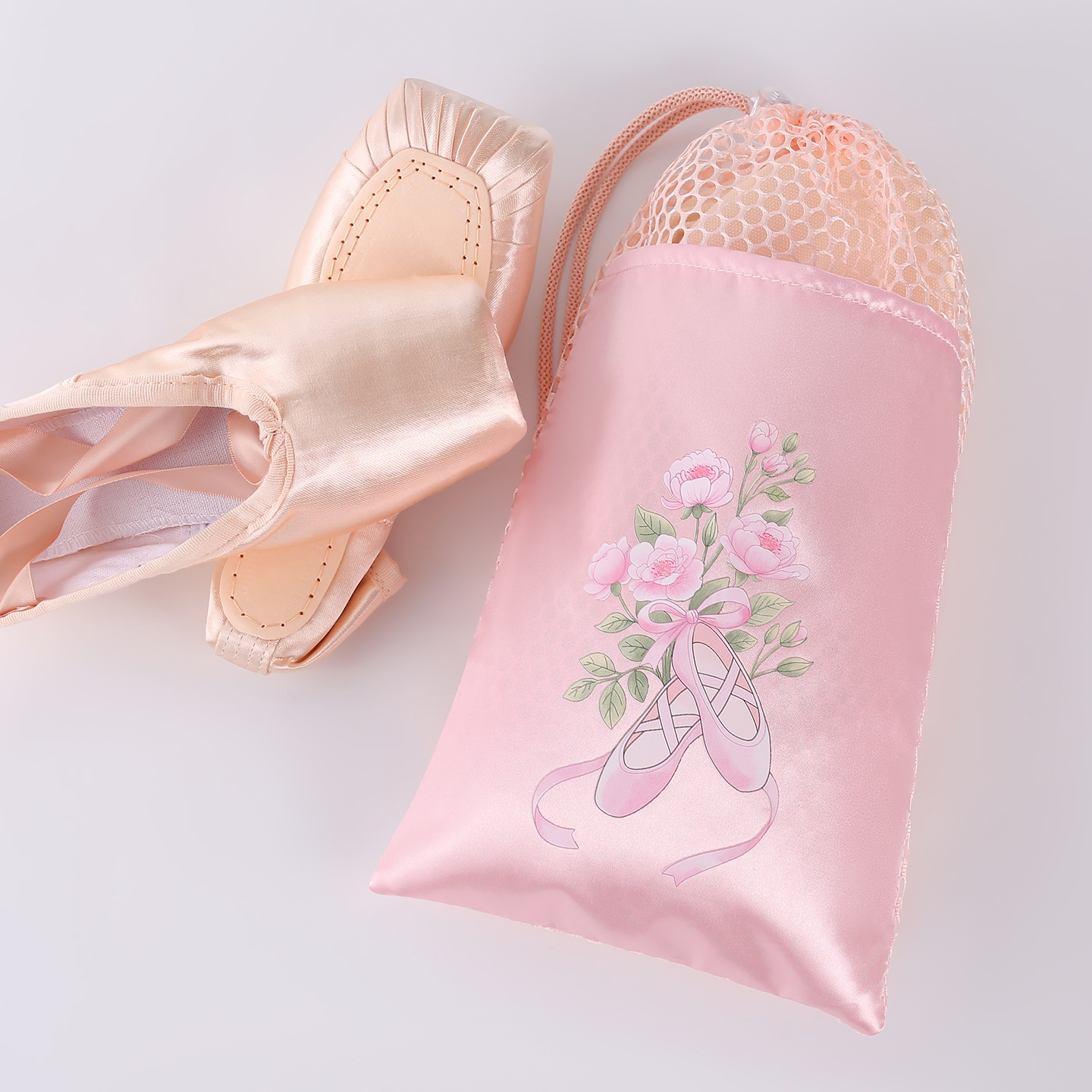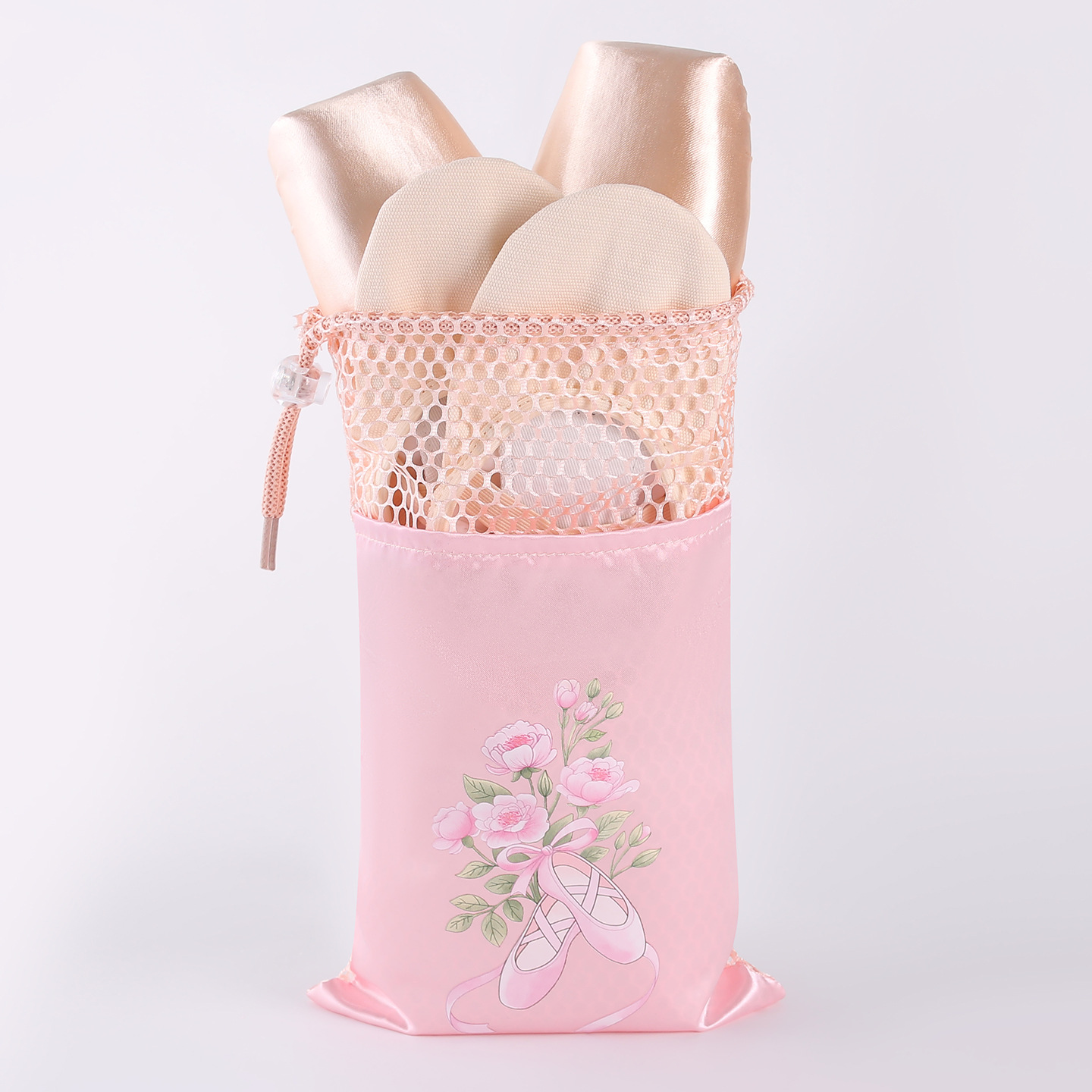 双口袋舞蹈鞋束口收纳袋透气网眼芭蕾足尖鞋手提袋舞鞋专用抽绳包