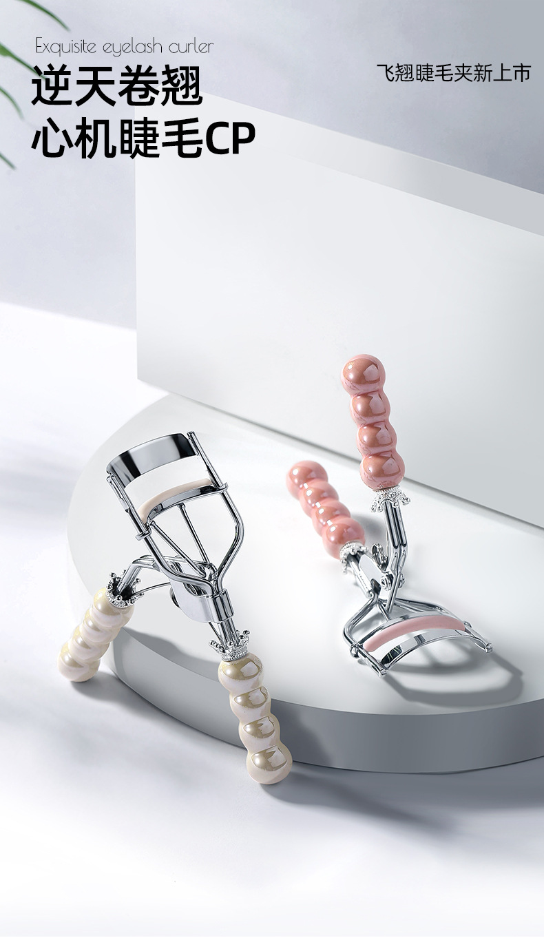 厂家新款陶瓷手柄睫毛夹自然卷翘睫毛夹不夹肉不锈钢太阳花睫毛夹