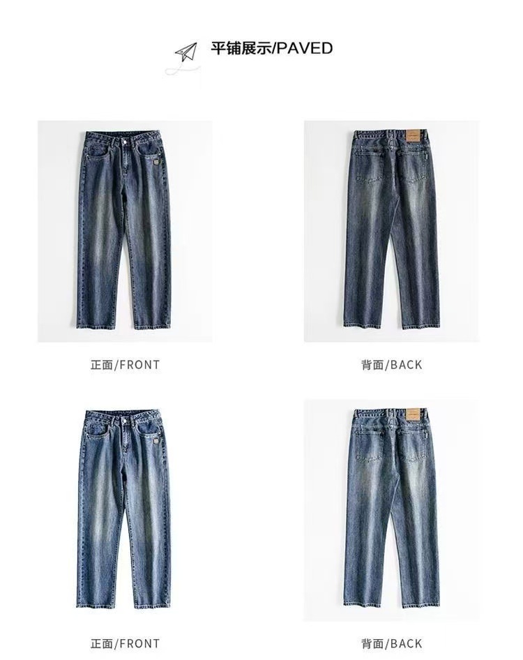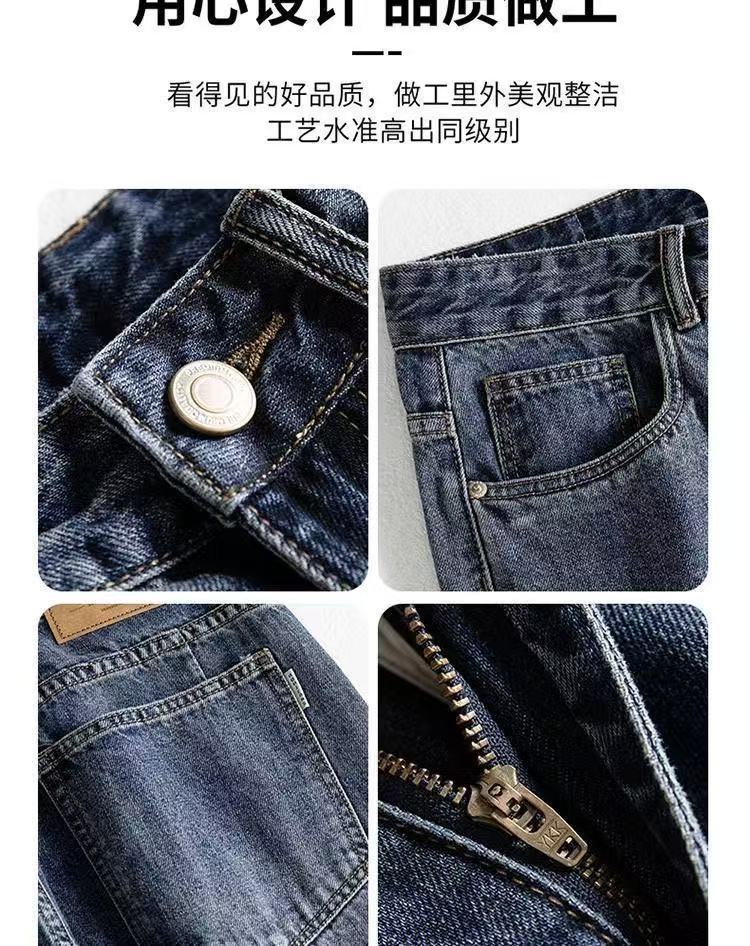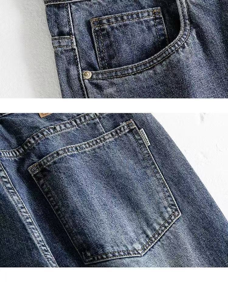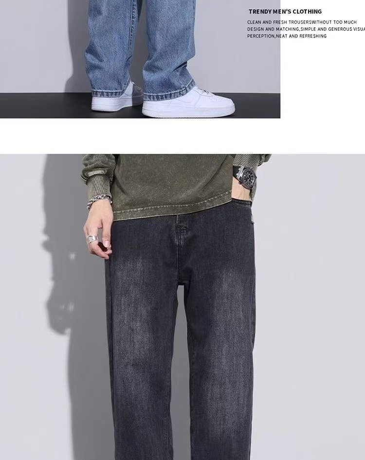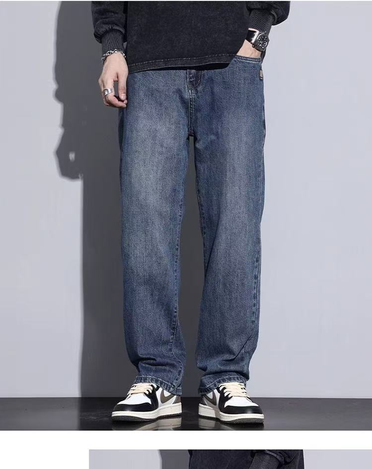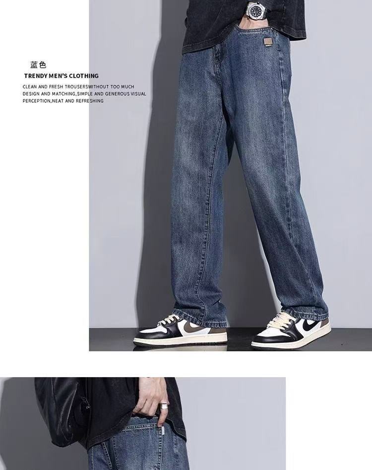 2025 春と秋の新ルーズストレートウォッシュジーンズメンズトレンディなアメリカンレトロワイドレッグルーズカジュアルパンツ