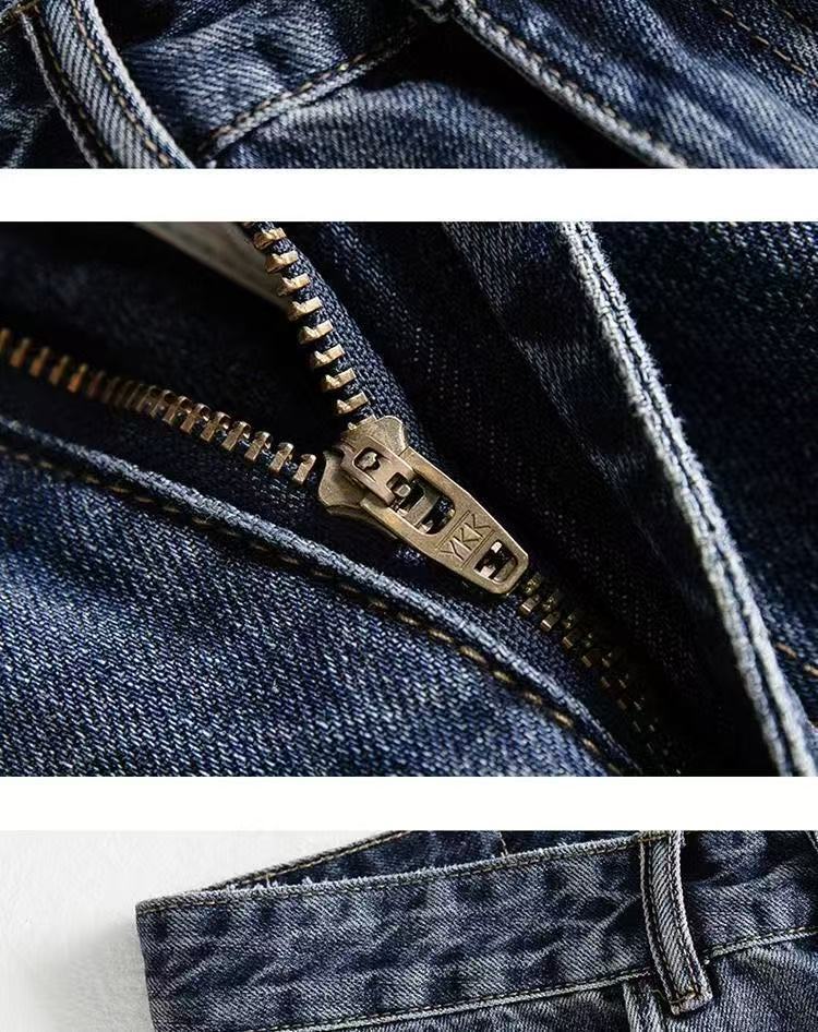 国潮レトロ青水洗いジーパン男性のごろつきがかっこいいです。
