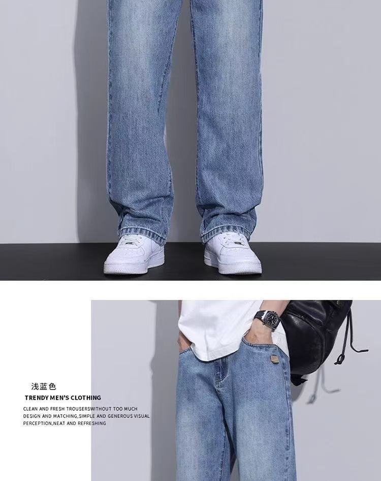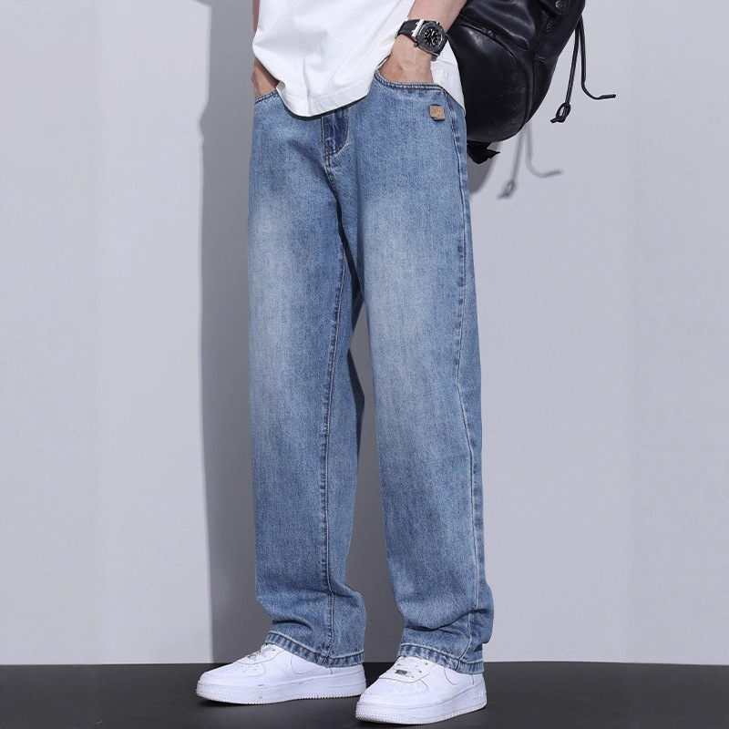 ストレートジーンズメンズ貿易夏の新しいトレンディなブランドルーズストレッチボーイズカジュアルワイドレッグロングパンツ薄手