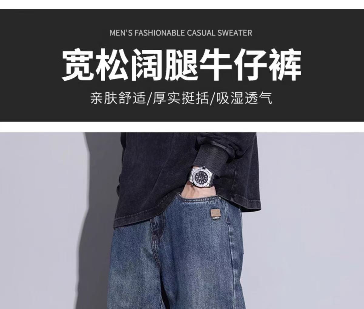秋冬加绒青少年牛仔裤男阔腿直筒牛仔裤复古新款美式宽松男士裤子