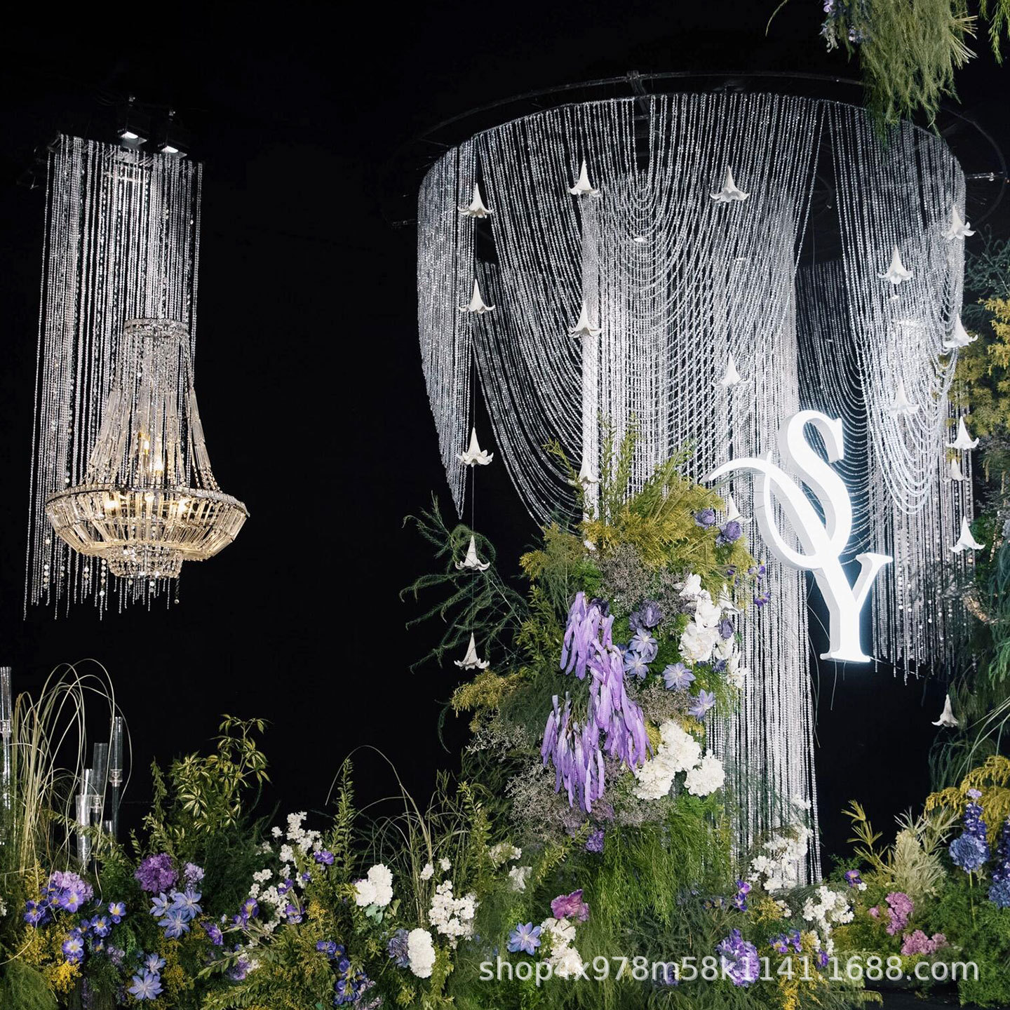 新型ウェディング真珠雪紡績糸屋外芝生結婚式配置舞台吊り下げ糸森系アーチ飾りカーテン