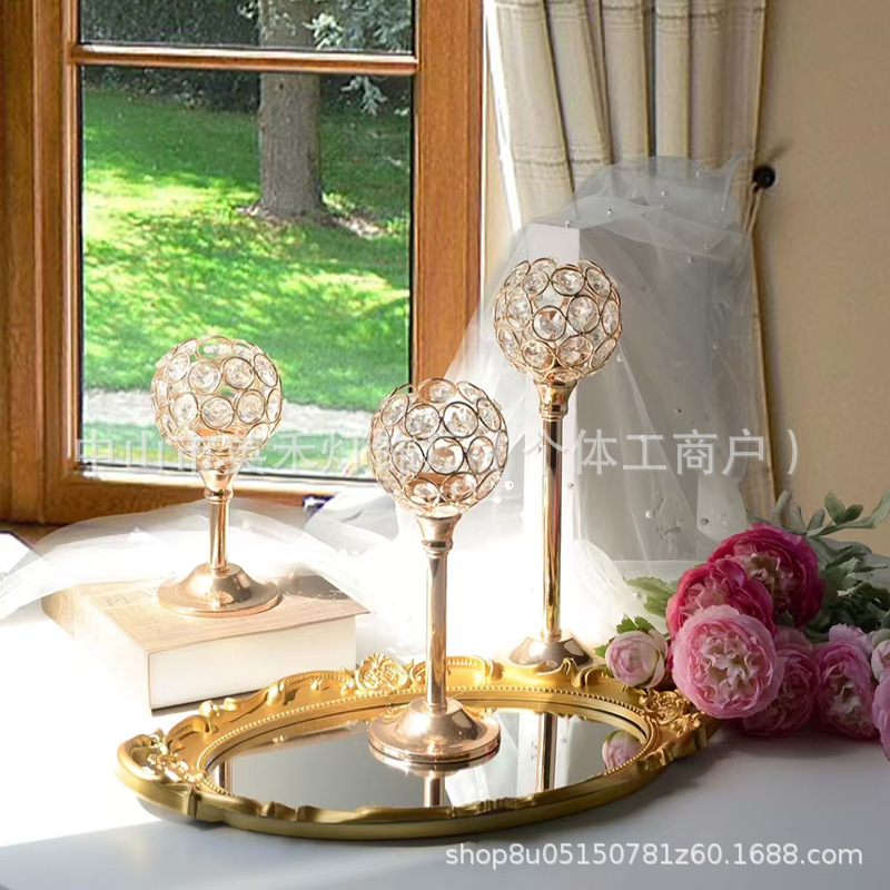 欧式迷你水晶烛台创意金属摆件婚庆酒店家居烛光晚餐道具布置饰品