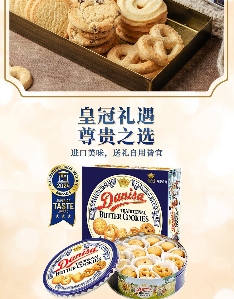 Danisa皇冠丹麦曲奇饼干454g礼盒装结婚喜饼进口营养零食经典曲奇