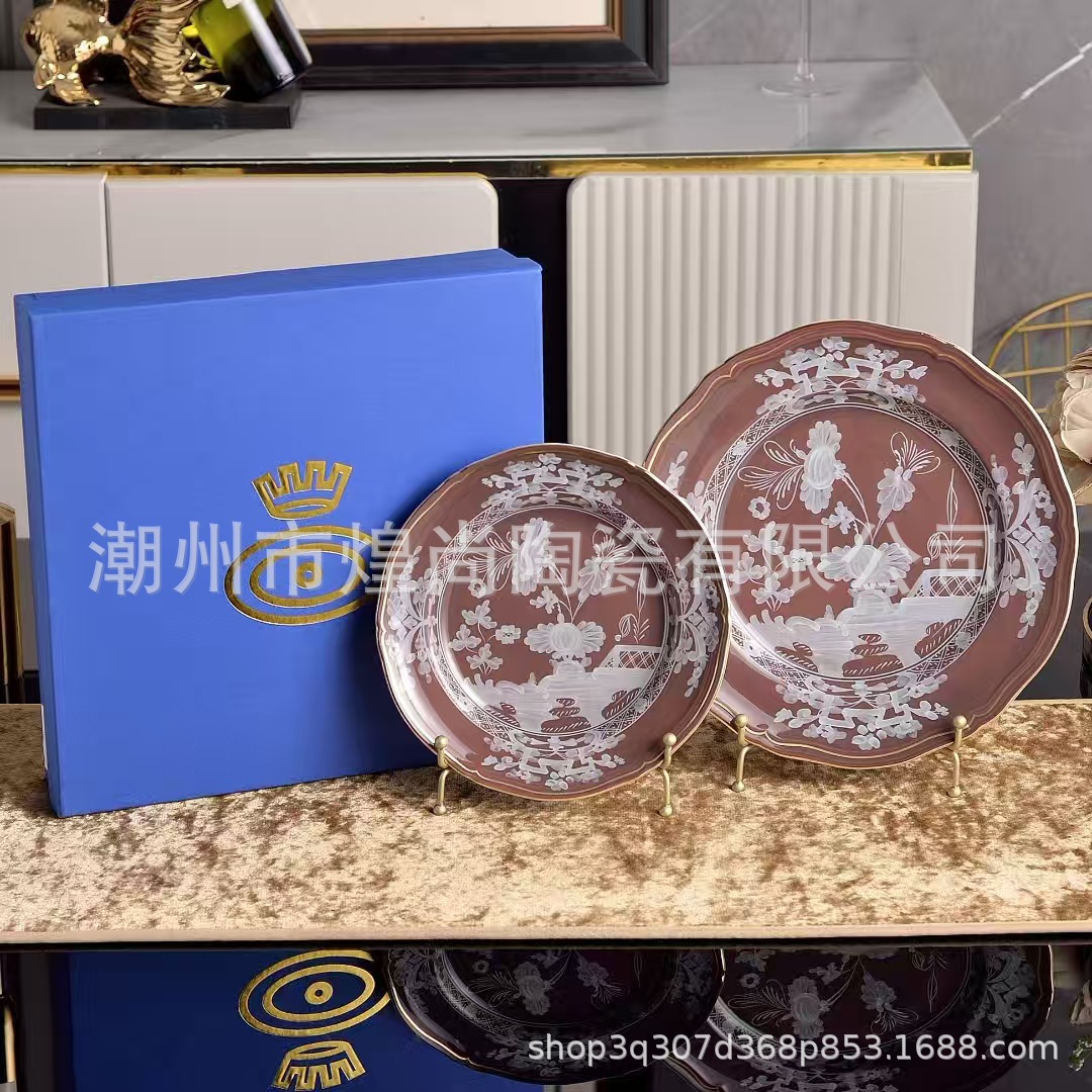 意大利Ginor1735巧克力陶瓷餐盘点心盘10寸8寸盘杯碟家用批发礼盒