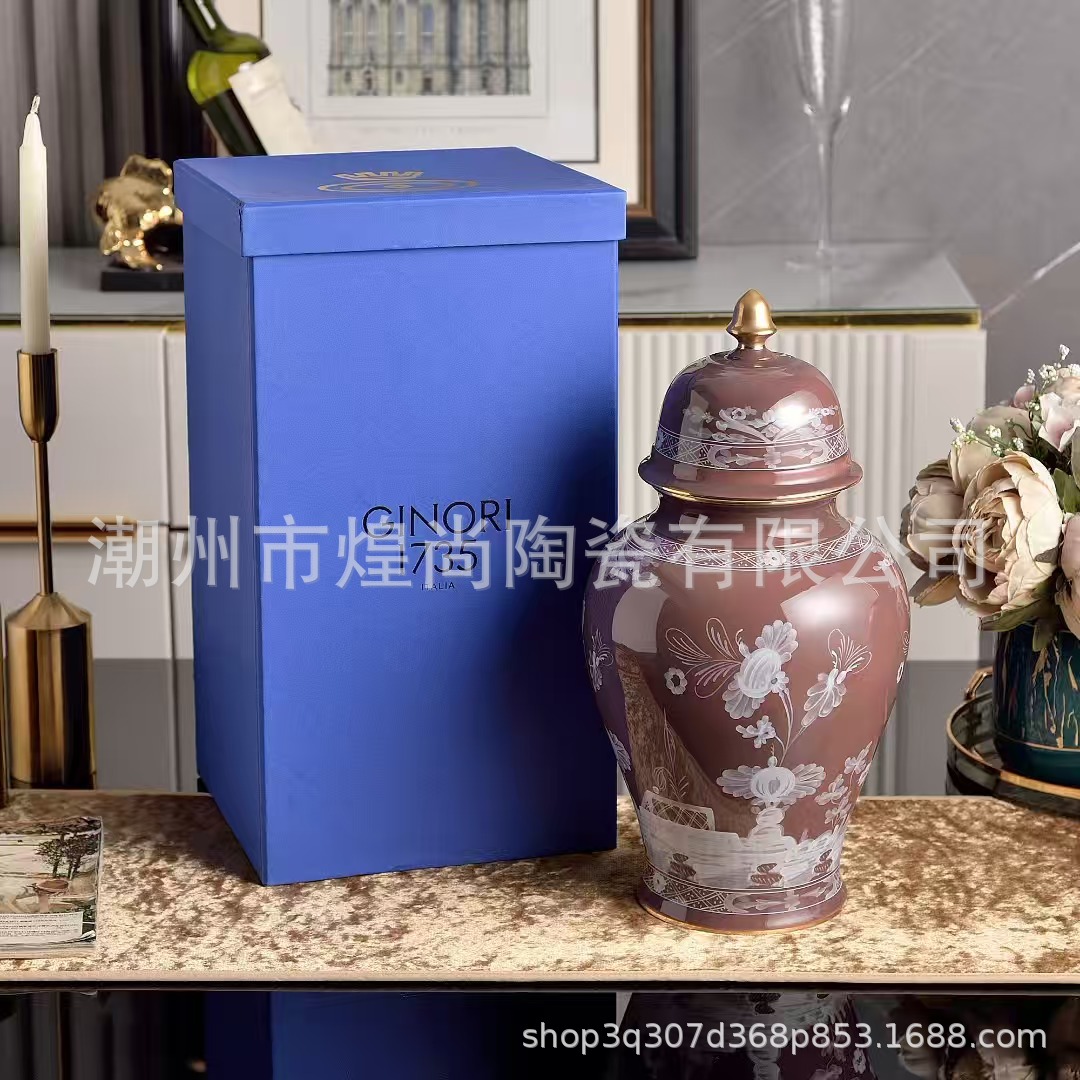 基诺里1735东方韵味艺术瓷器灯笼花瓶中号储物罐中式装饰玄关花瓶