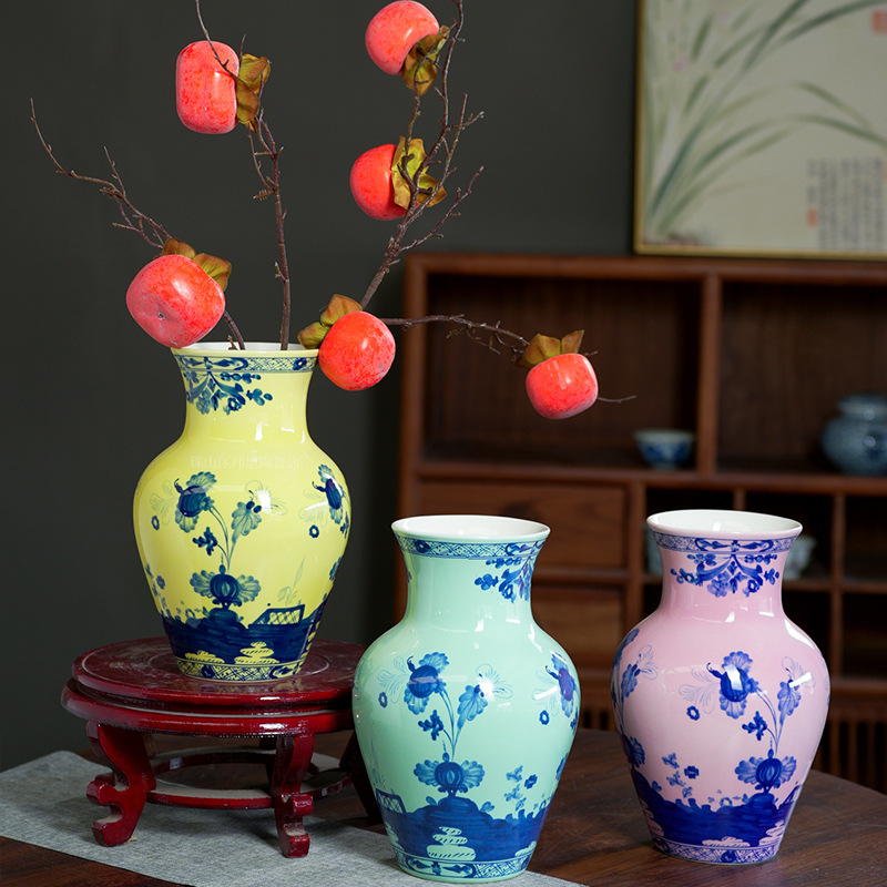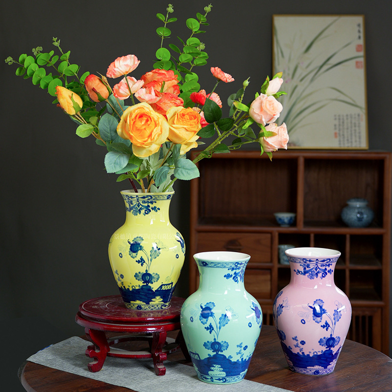クロスボーダー青と白のセラミック花瓶リビングルームの装飾家の玄関の装飾植木鉢レトロライト高級ハイエンドの装飾品
