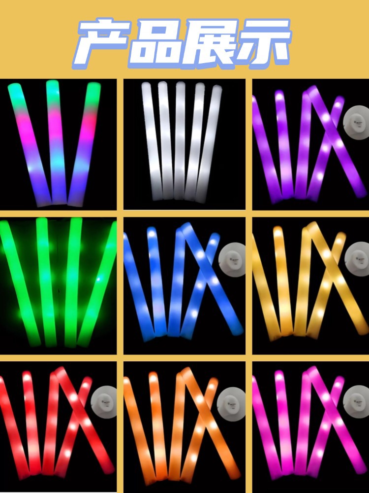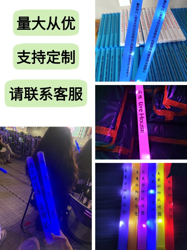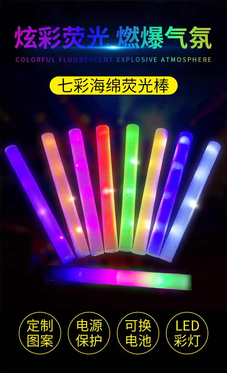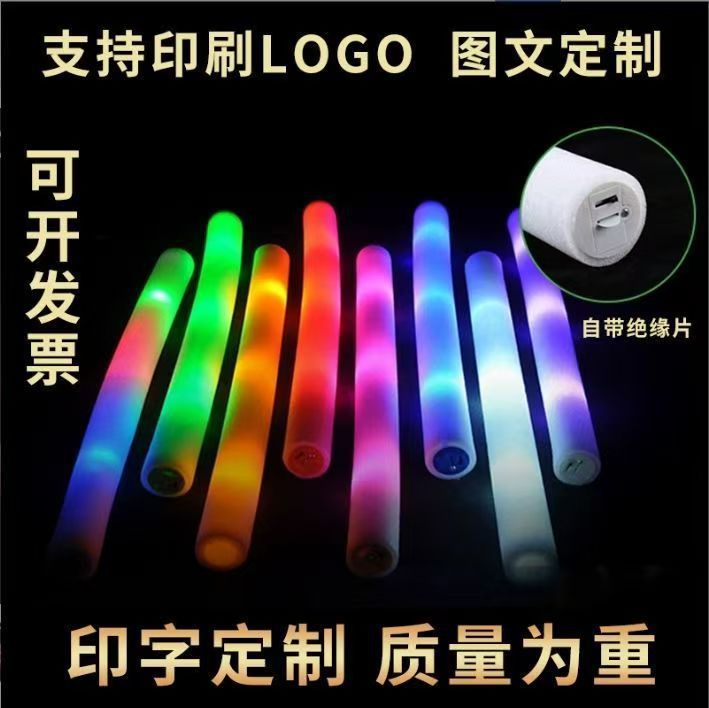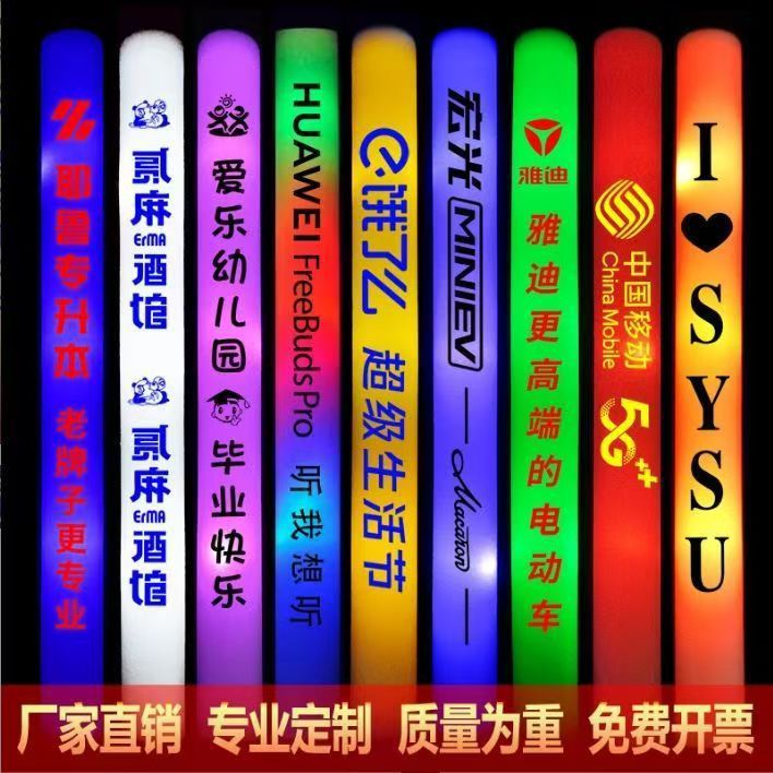 跨境七彩海绵荧光棒演唱会荧光棒应援棒音乐节荧光棒印刷logo