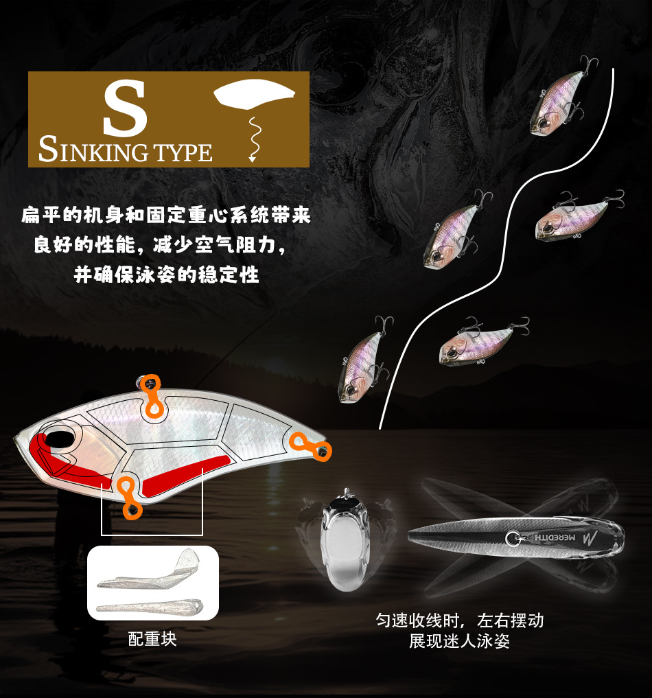 VIB沉水VIB路亚饵响珠震动远投淡海水钓鲶鱼翘嘴鲈鱼7.5cm硬饵