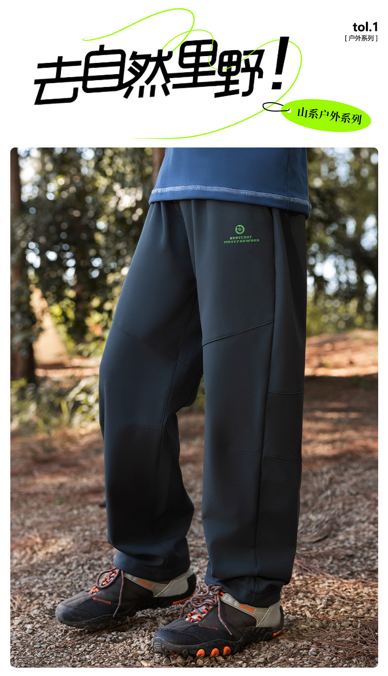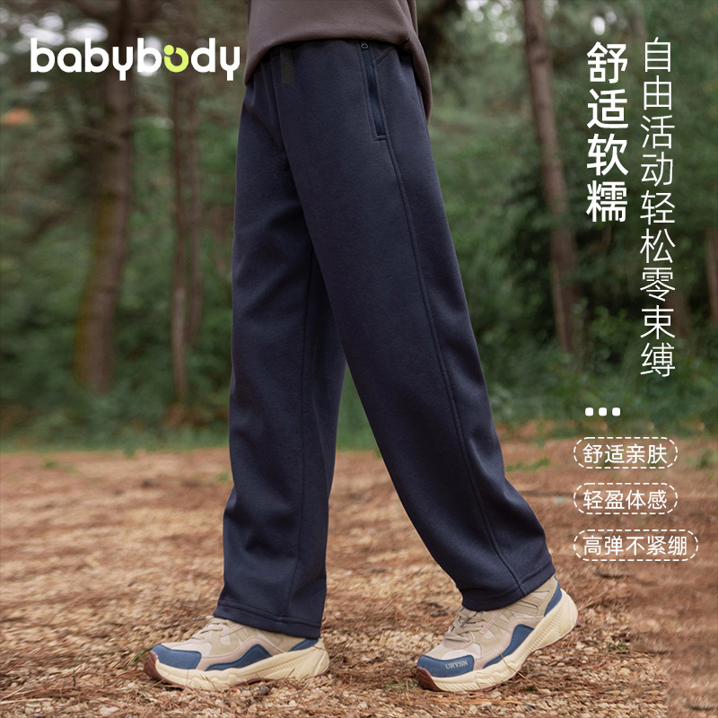 babybody男童加绒卫裤秋冬2025新款帅气儿童加厚休闲裤子大童直筒