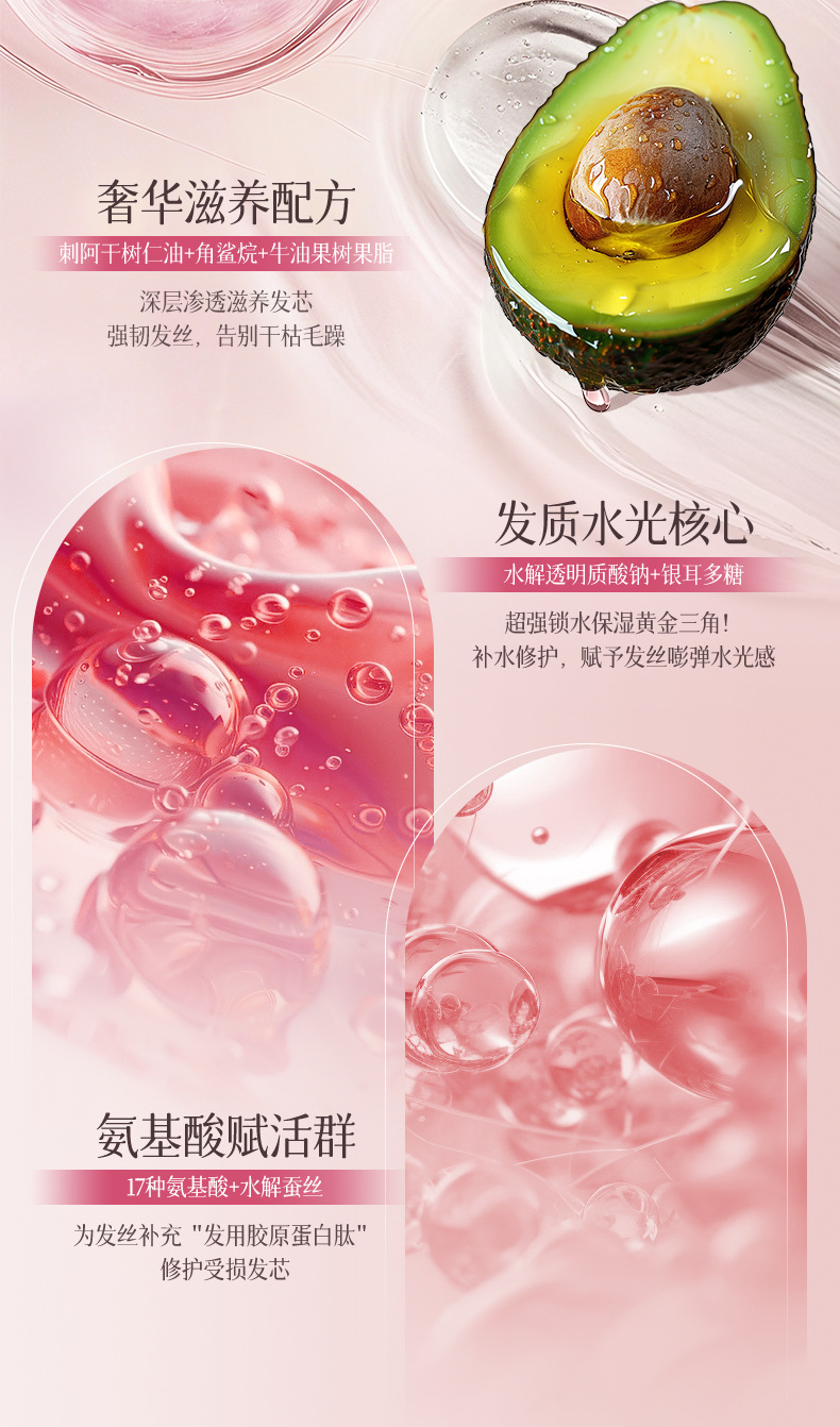 功效 柔软顺滑,强韧发质,防开叉,损伤修复,头皮控油
