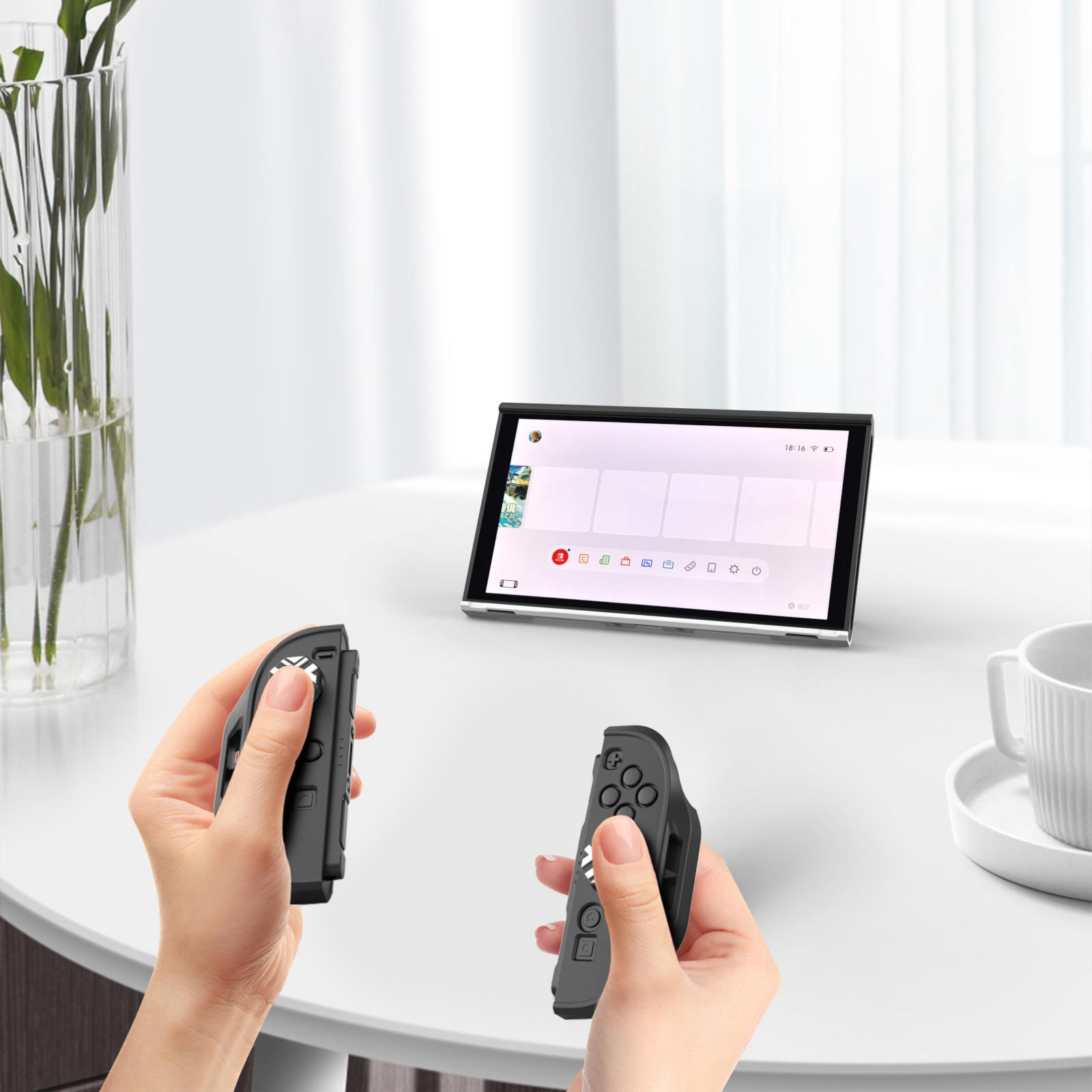 3:带壳整机可轻松插入底座(TV模式无需拆开保护壳)。
