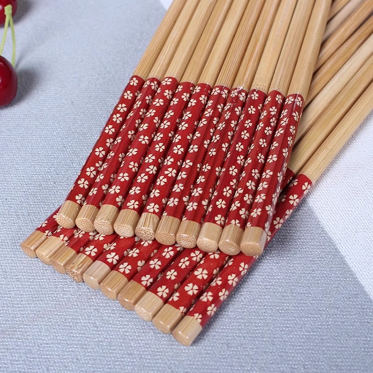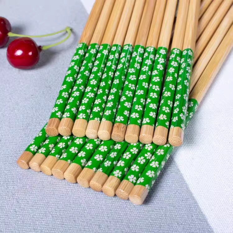 天然竹木筷子家用防霉防滑小碎花竹筷饭店无漆无蜡木筷环保耐高温
