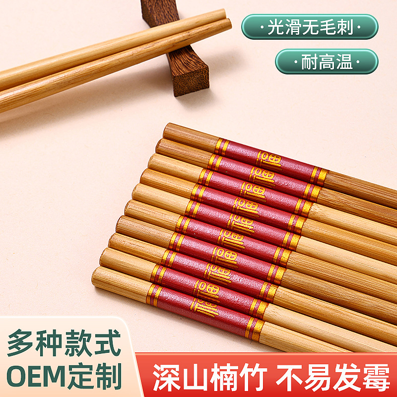 纯天然楠竹筷子家用竹木筷无漆无蜡掉色加粗防滑防霉耐高温