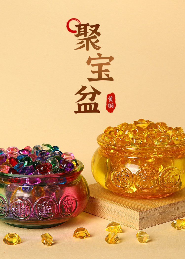 琉璃彩色聚宝盆装满小元宝招财进宝礼品家居装饰黄水晶聚宝盆摆件