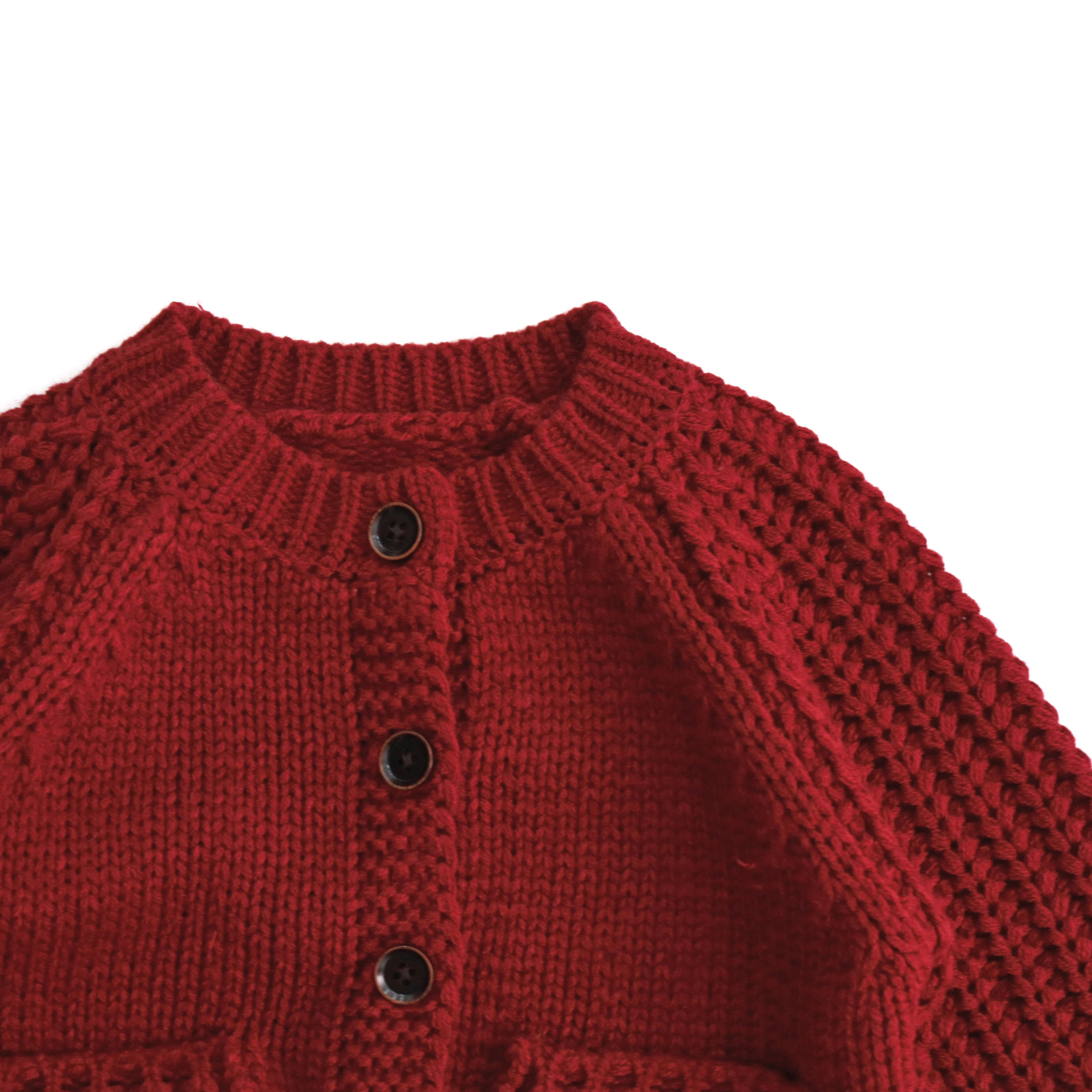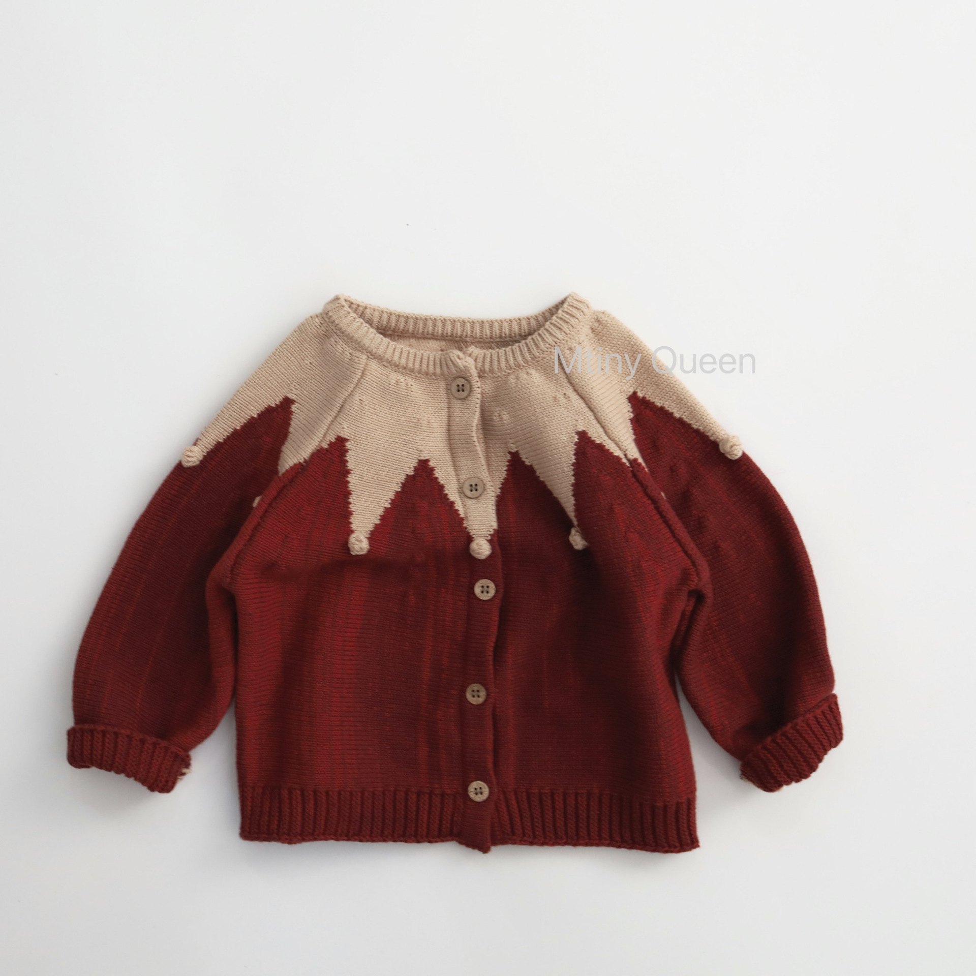 Mtinyqueen~暗红混穿撞色 棉手工球针织外套儿童开衫男女宝森