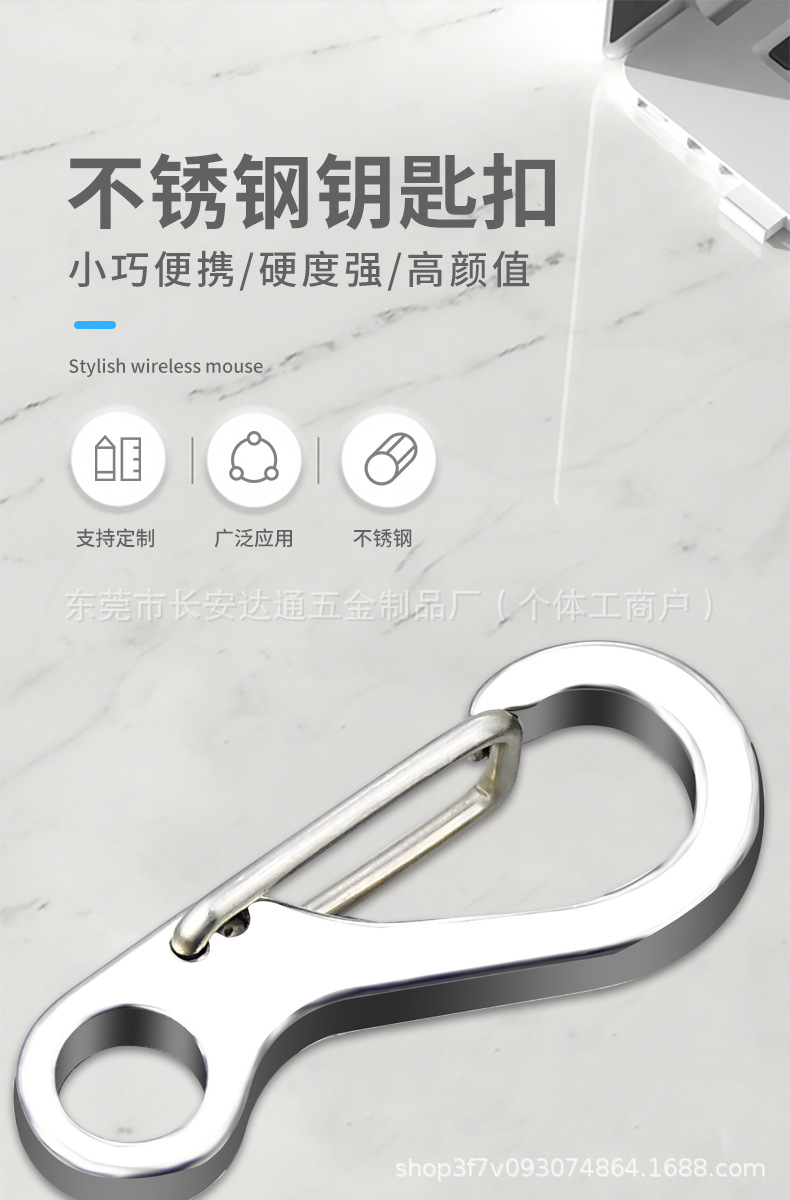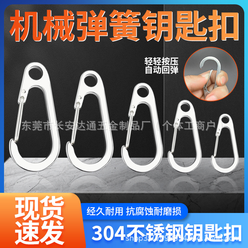 批发304不锈钢钥匙扣箱包线绳金属配件钥匙环圈弹簧户外防锈挂扣