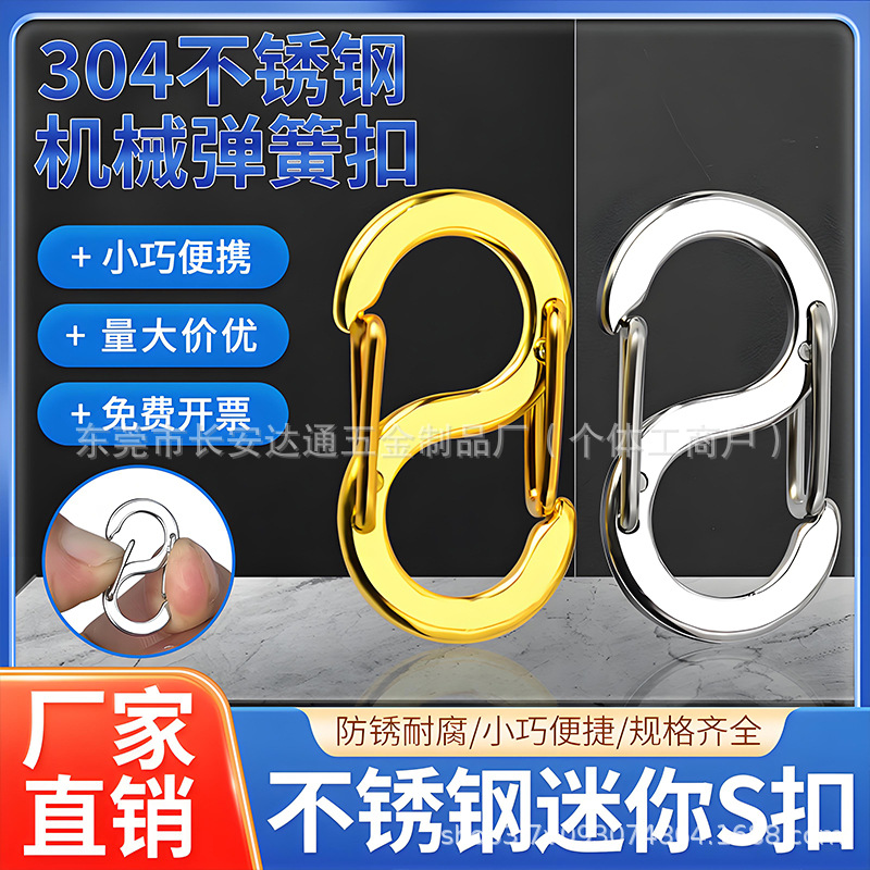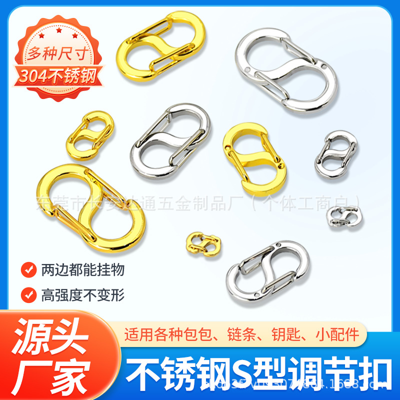 ステンレス8字バックルs型スプリングバックルミニキーホルダーEDCアウトドアバッグ長さ調整ボタン