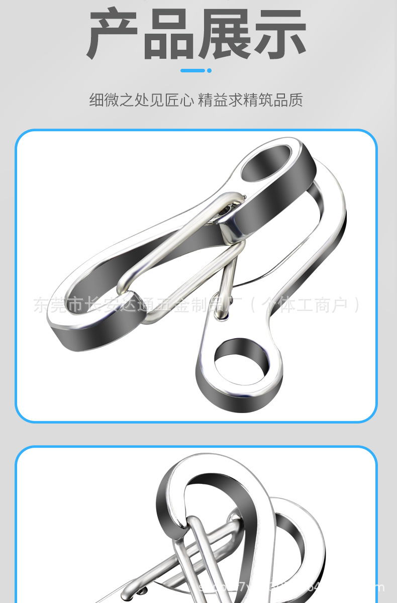 锌合金迷你小挂扣电镀弹簧扣D型小饰品扣户外背包小钩扣快挂弹扣
