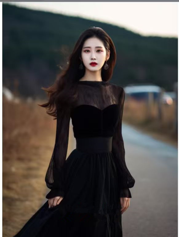 生日成人礼开春穿搭高端轻奢宴会礼服裙收腰黑色丝绒连衣裙女秋冬