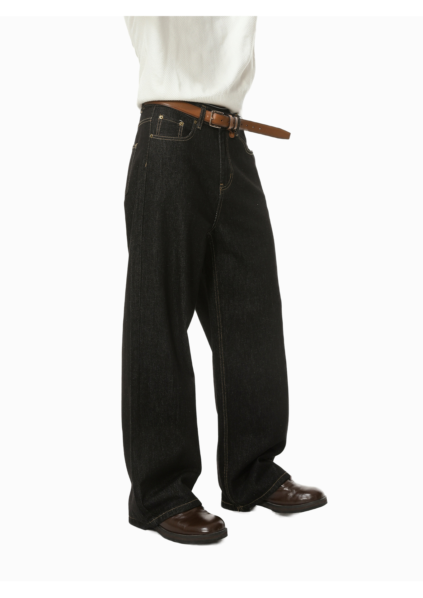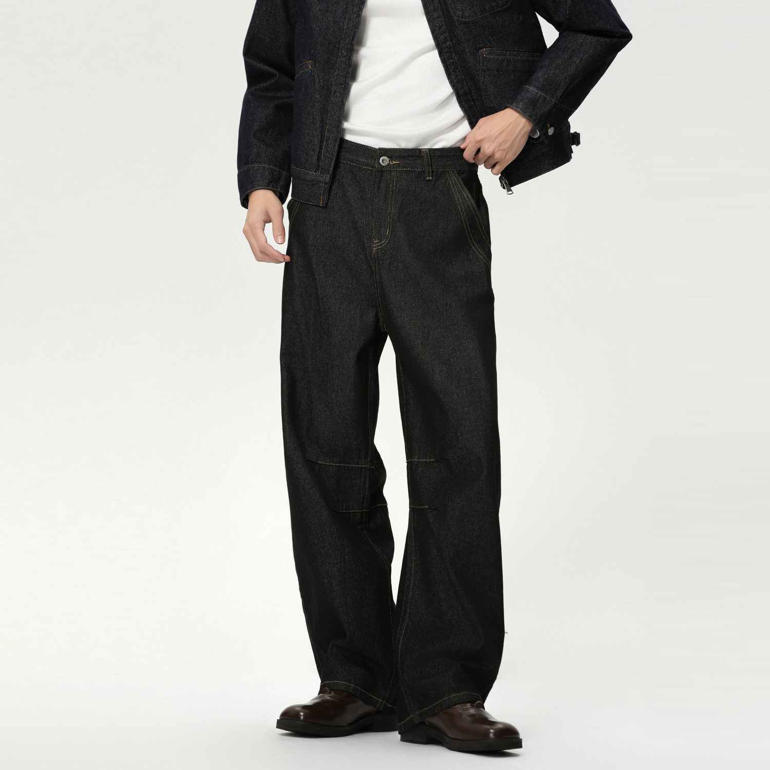 MTLCLOTHES男装|美式弯刀复古阔腿百搭原牛辑明线简约休闲牛仔裤