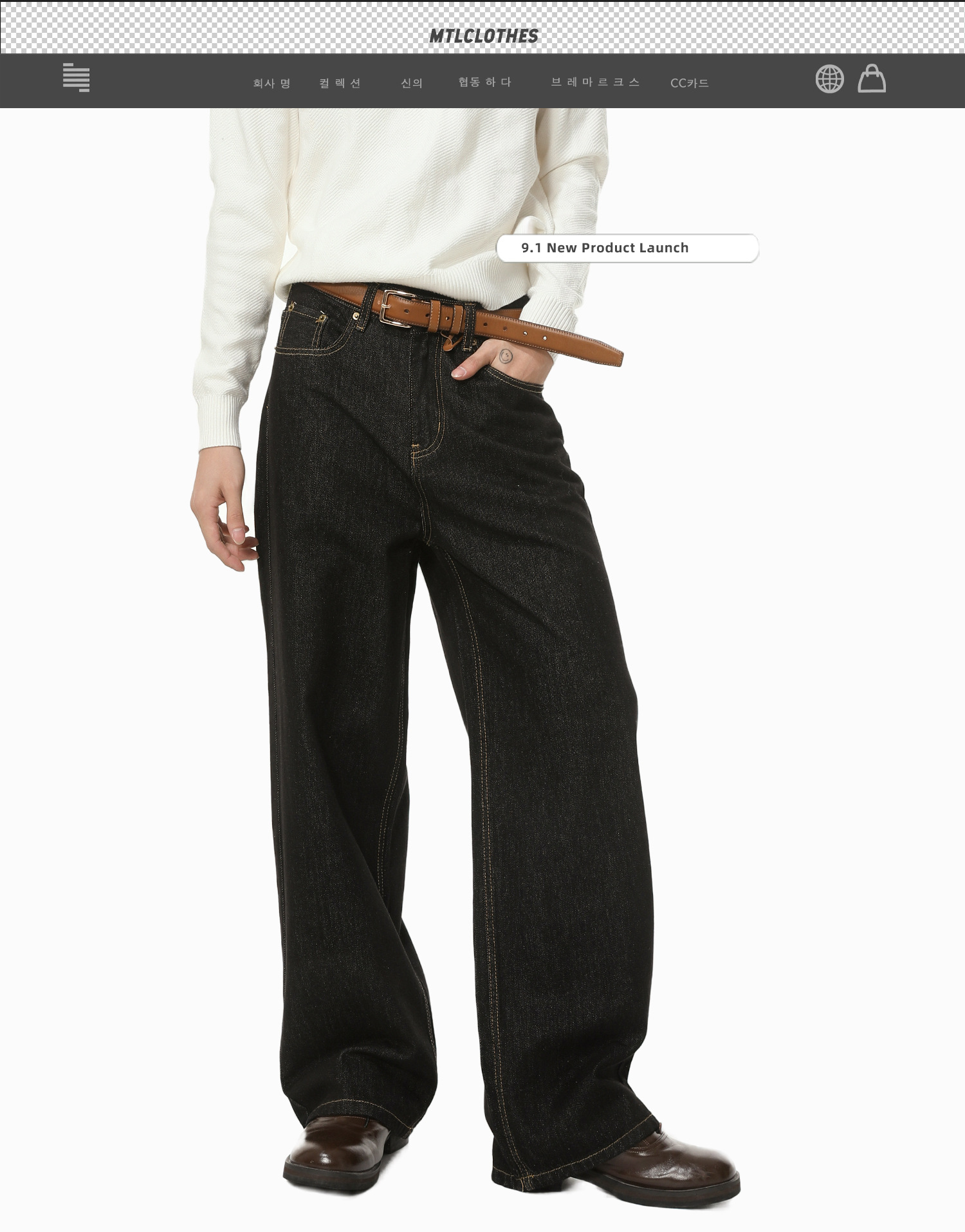 MTLCLOTHES男装|垂感宽松阔腿原牛Cleanfit休闲直筒牛仔裤百搭潮