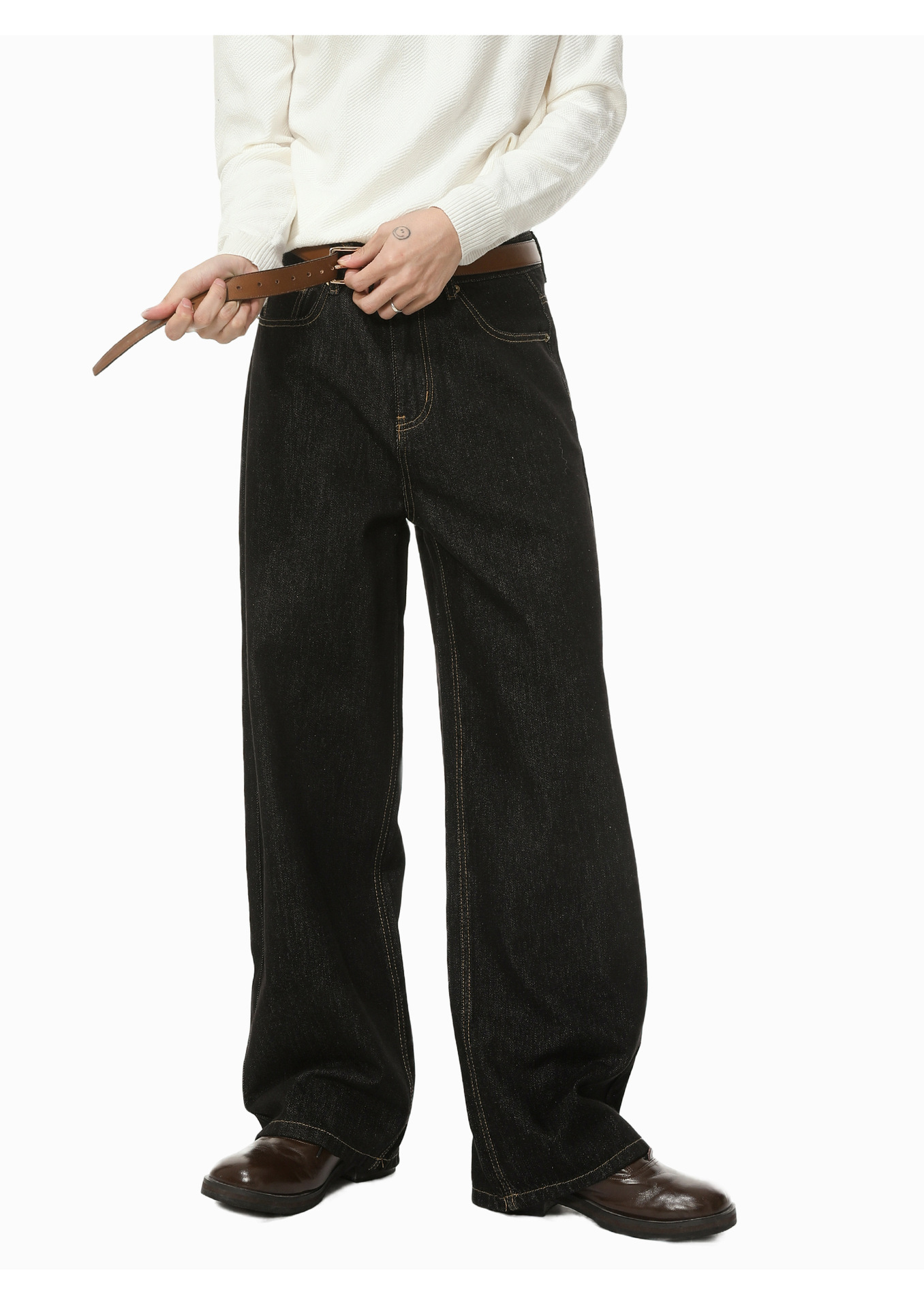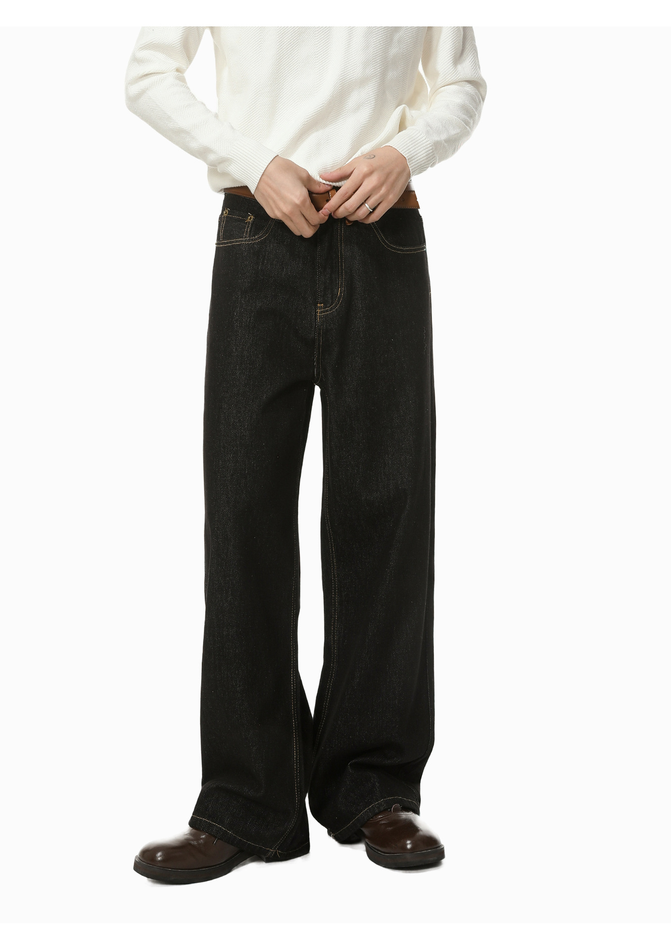MTLCLOTHES男装|复古美式男士原牛黑色经典百搭通勤宽松牛仔裤潮