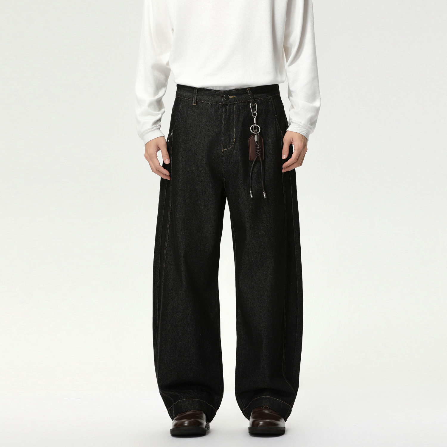 MTLCLOTHES男装|原牛高街阔腿廓形休闲百搭宽松弯刀水洗牛仔裤潮