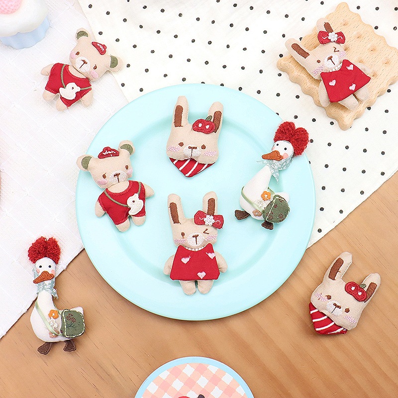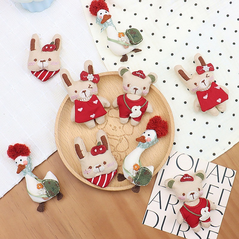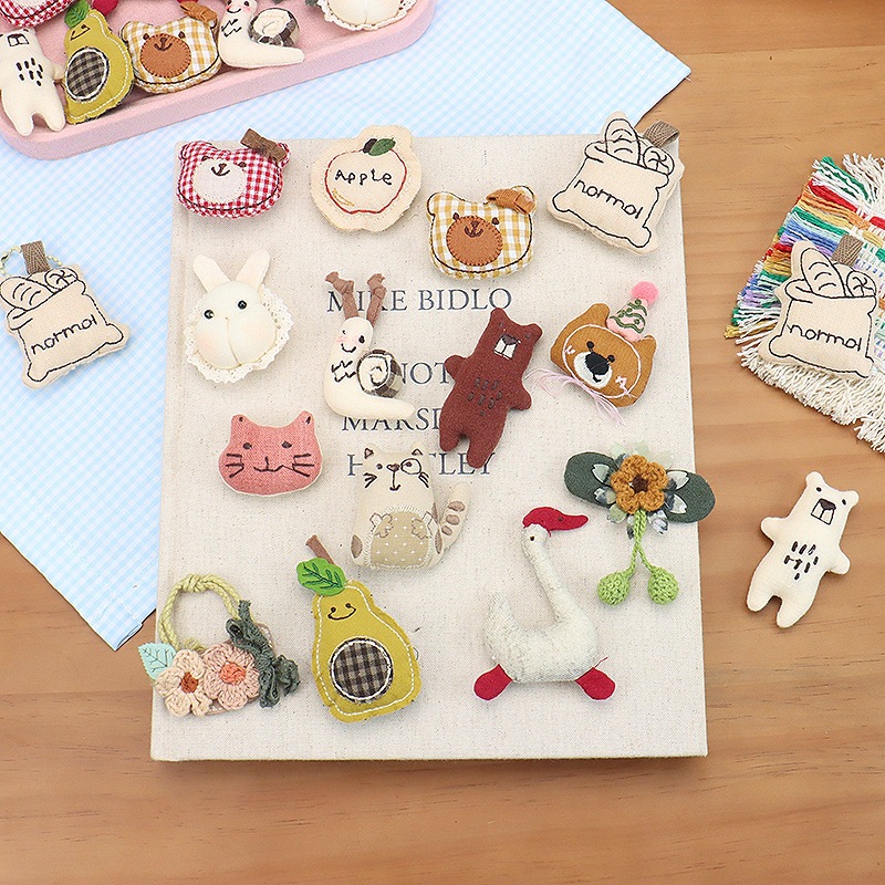フォレストスタイルかわいい漫画アヒル蝶小動物綿とリネン生地ブローチアクセサリー女の子ヘアアクセサリーアクセサリー