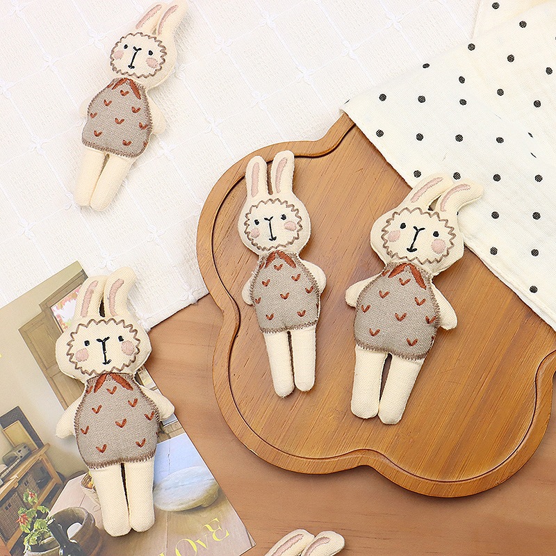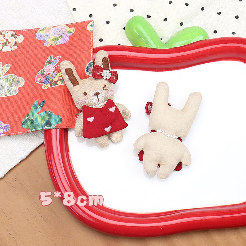 新款森系布艺充棉小兔子发夹配饰韩国卡通刺绣兔子鞋帽辅料配件