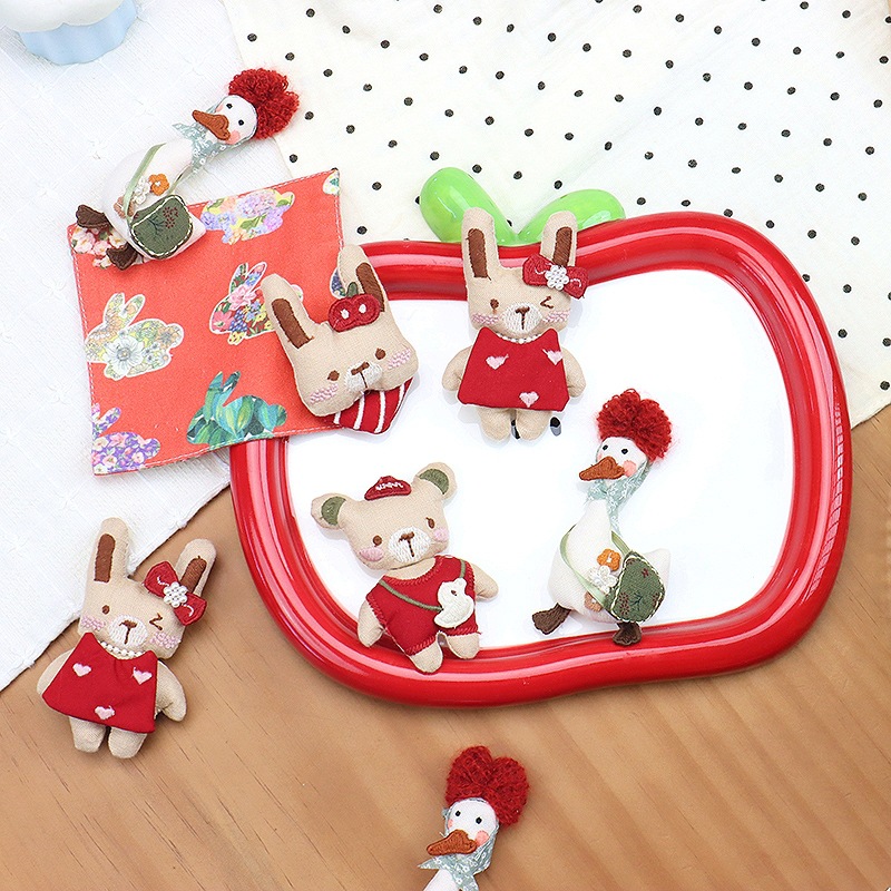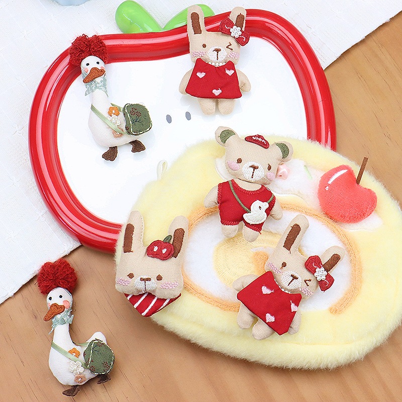 森系赤いスカーフ熊チューリップブローチ布芸大根兎髪飾り部品diy少女心飾り卸売り
