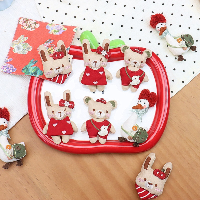 颜色 红色裙子兔,红色背包小熊,苹果领结兔,挎包鸭子