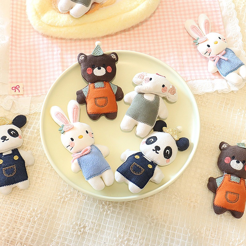 新款韩系动物园系列兔子小熊穿衣熊猫创意卡通玩偶胸针服饰配件