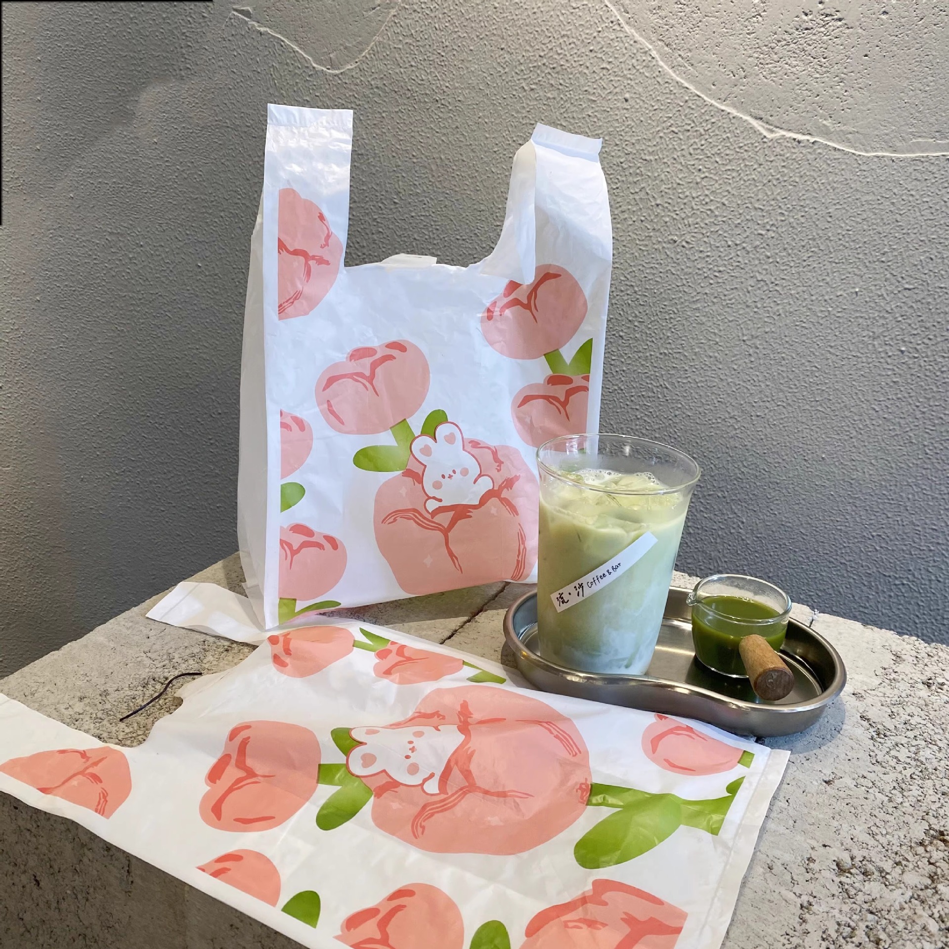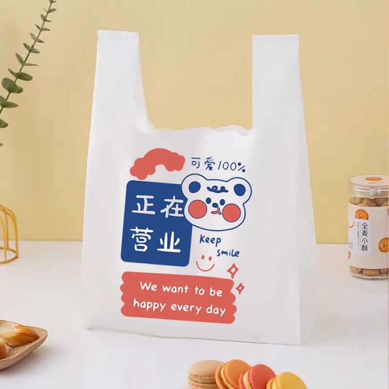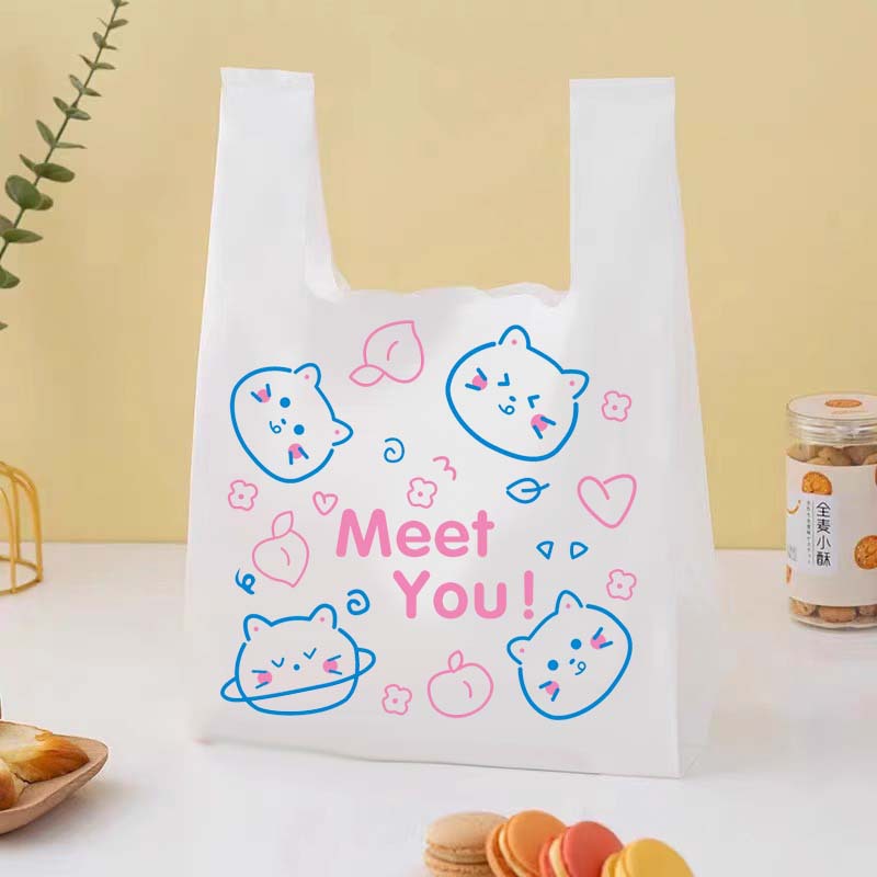 漫画かわいいプラスチック包装袋テイクアウトギフトスーパーマーケットショッピングデザート食品包装袋ハンドディスペンサー袋