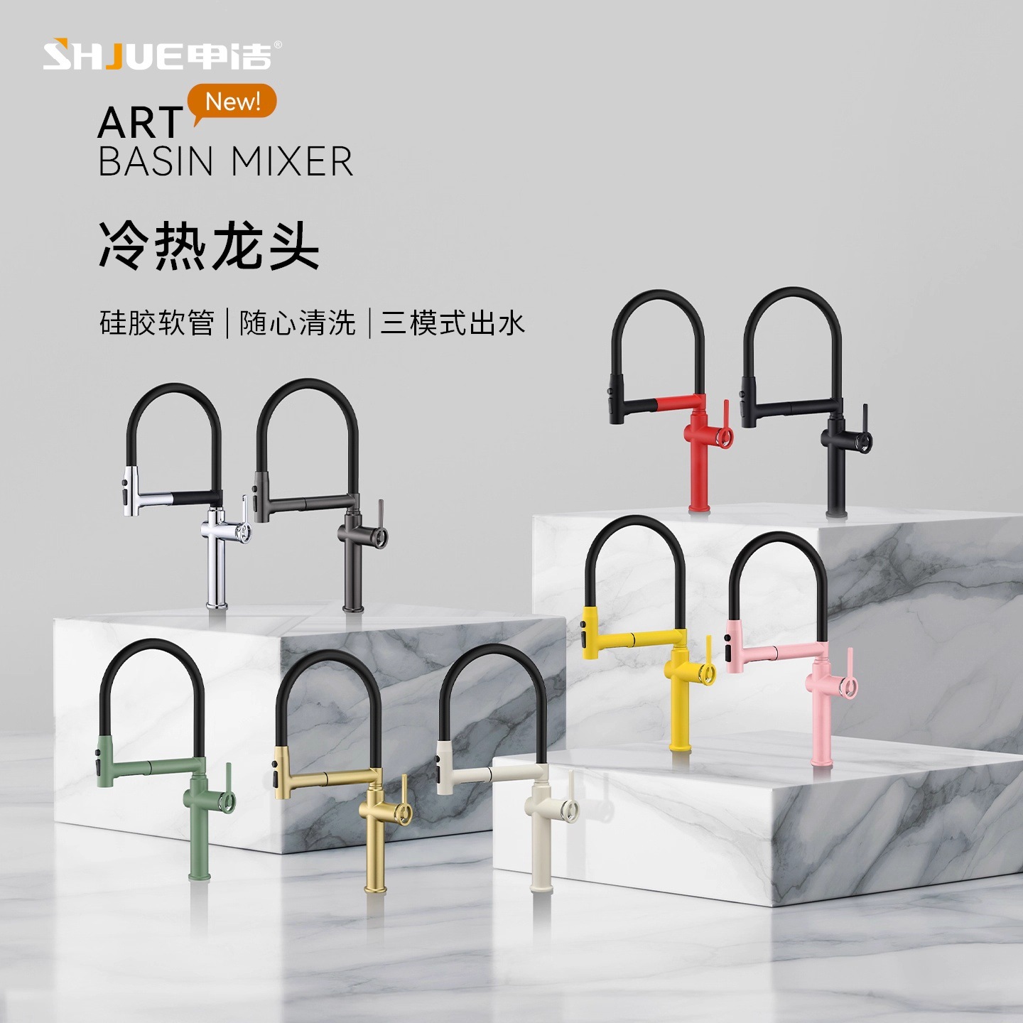 全铜厨房水龙头洗菜盆抽拉式水槽冷热洗碗磁吸岛台万向旋转多巴胺
