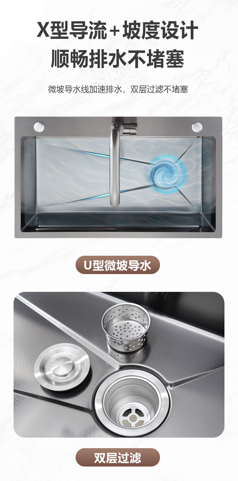 新款集渣水槽大单槽加厚SUS304不锈钢家用厨房洗菜盆洗手洗碗水池