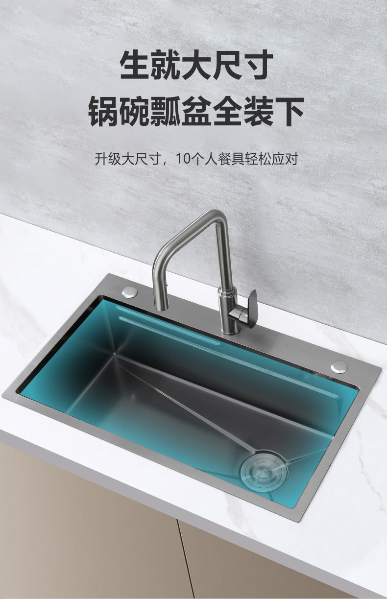 Feiyu キッチンシンク大型シングルスロットナノ SUS304 ステンレス鋼食器洗いシンク多機能厚みのある家庭用シンク