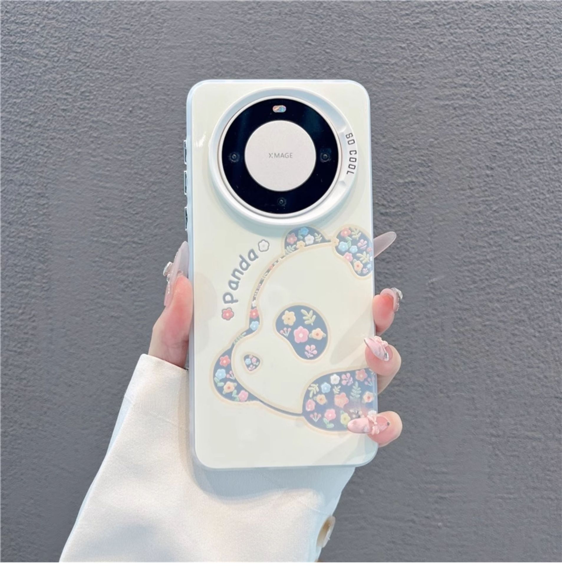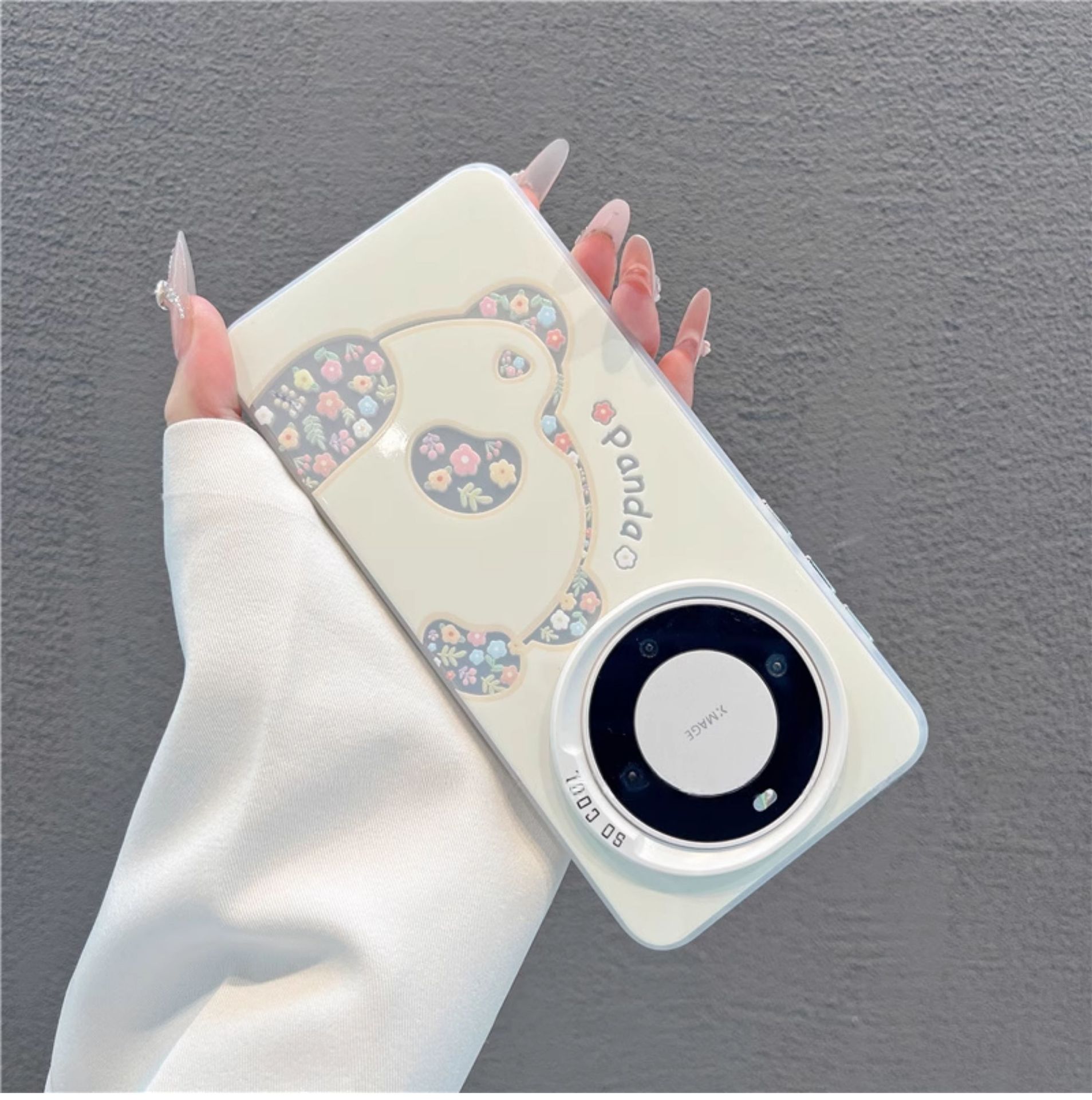 花朵熊猫适用华为mate70pro手机壳新款pura80pro磨砂彩银mate60卡