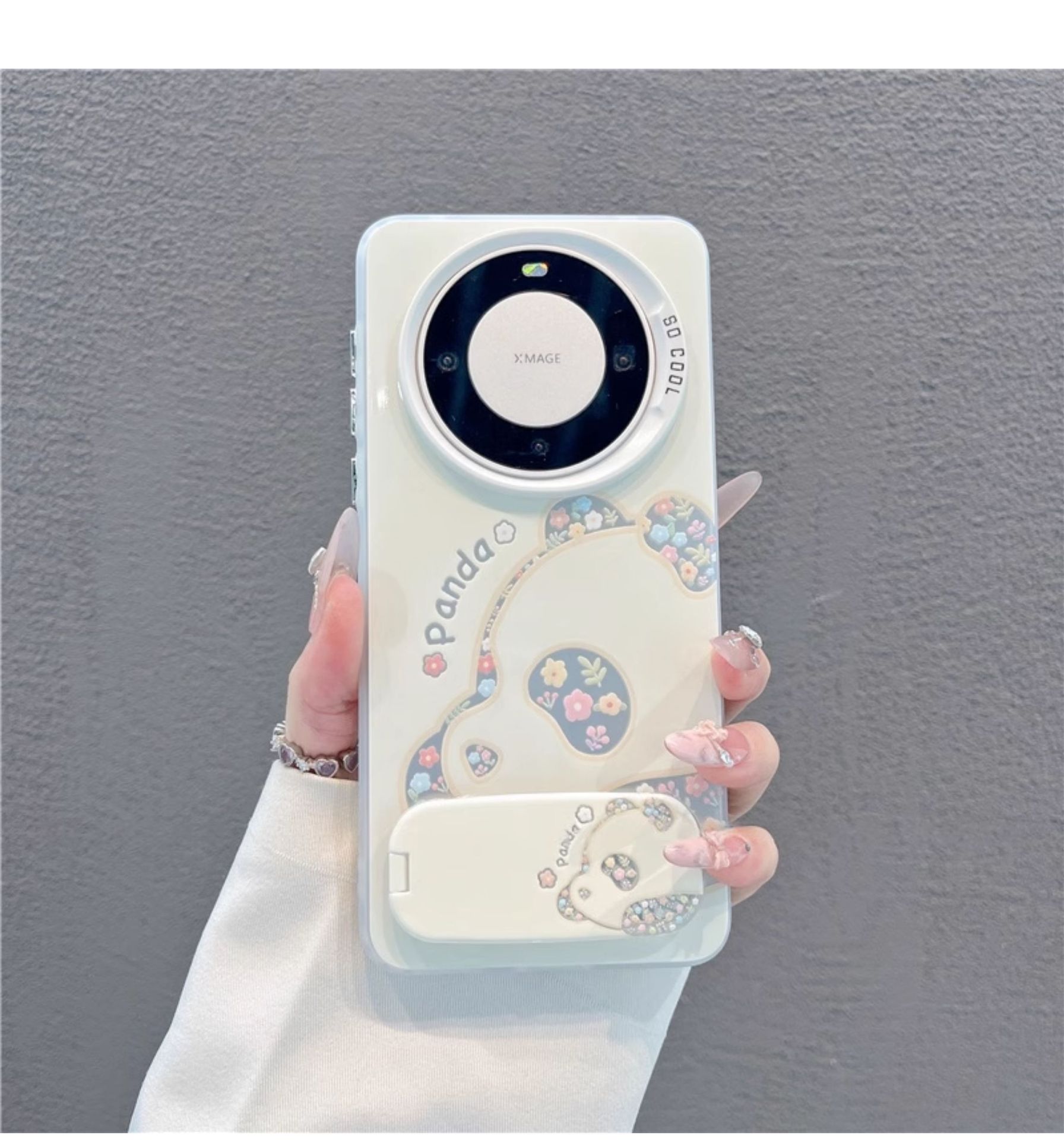 颜色 撞色元气壳-月光银-花朵熊猫ZSYQ1842银加纯白镂空花朵熊猫镜面支架