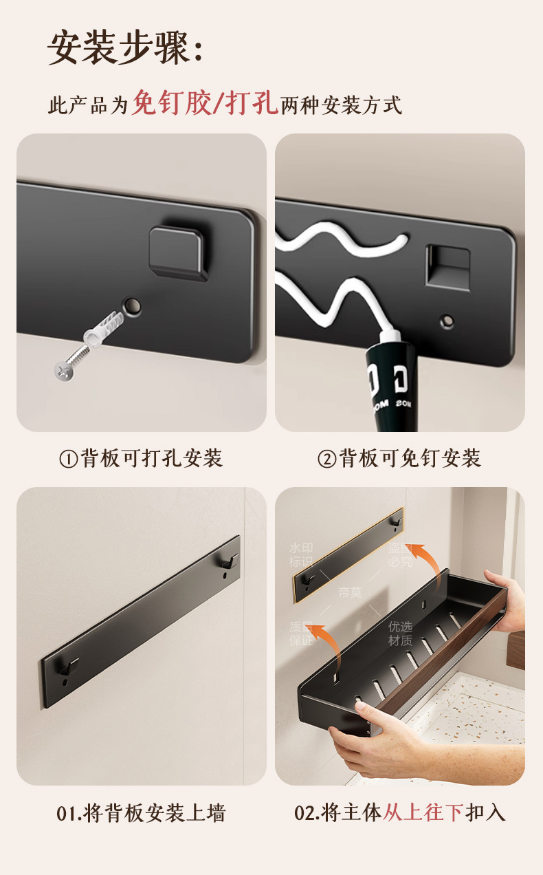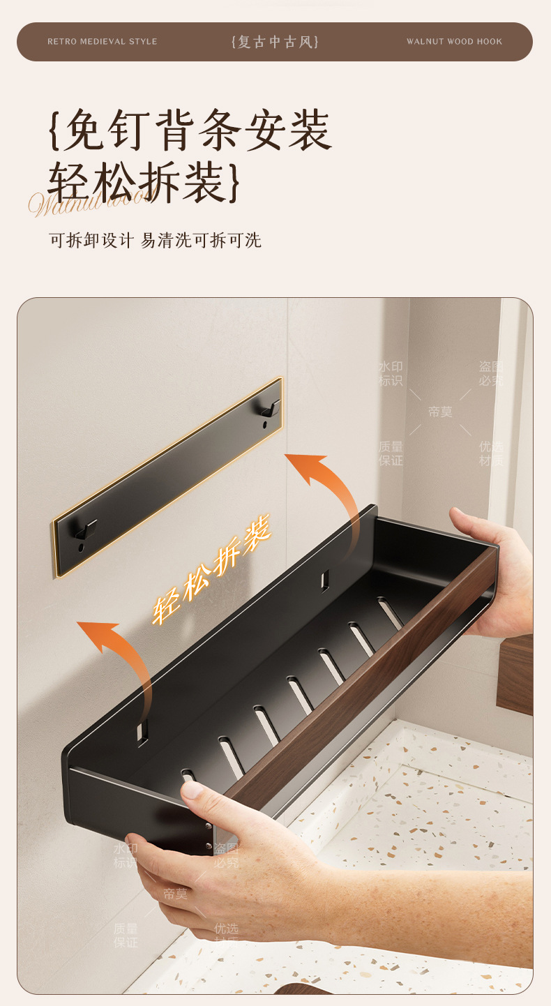 胡桃木纹卫生间浴室置物架免打孔挂墙上洗手间厕所洗漱台收纳架子