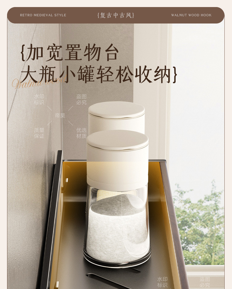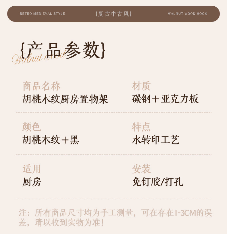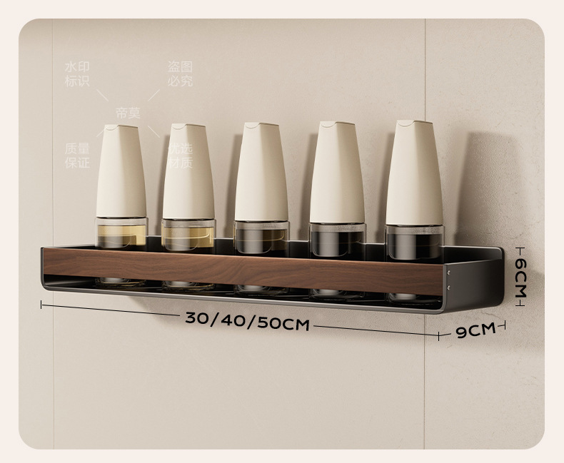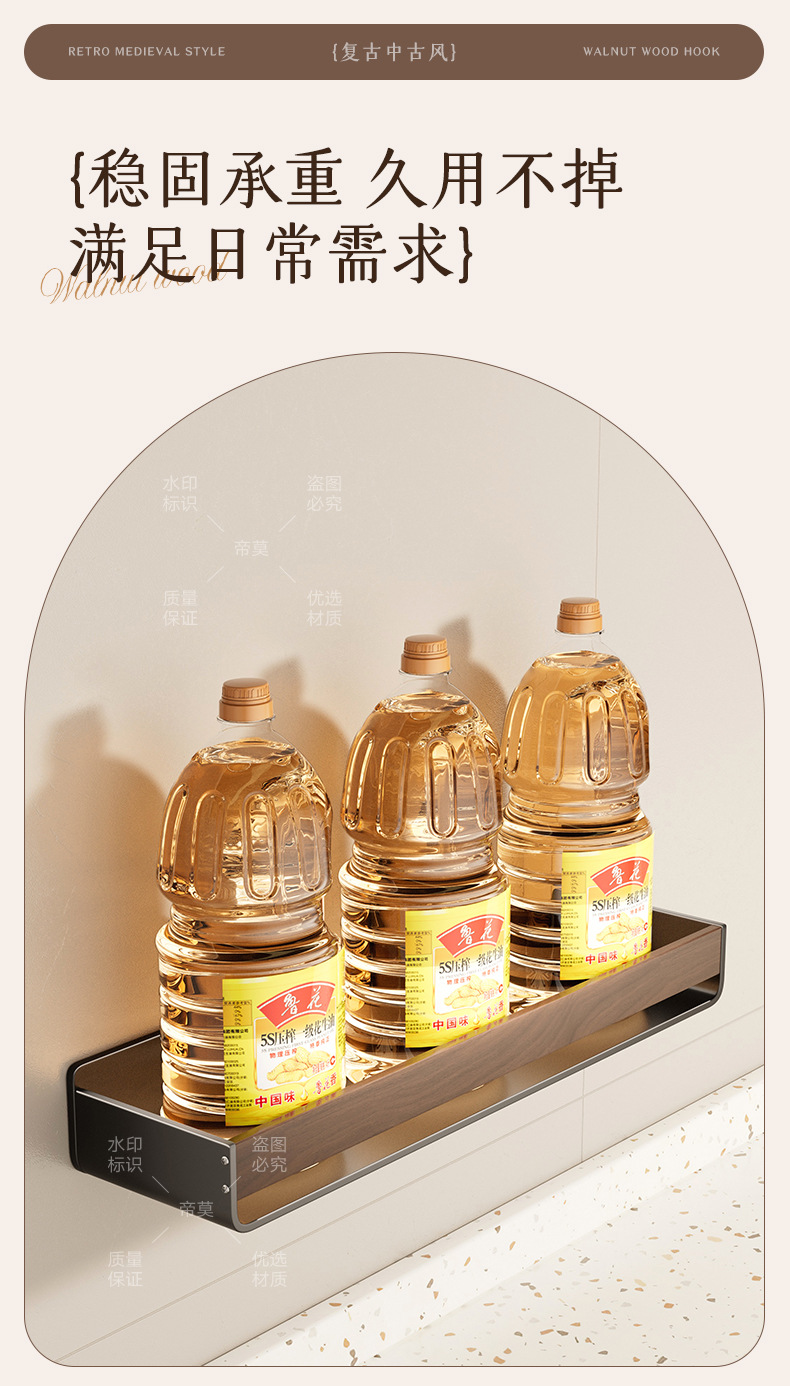 胡桃木纹厨房置物架调味品中古风免打孔壁挂式多功能收纳调味料架
