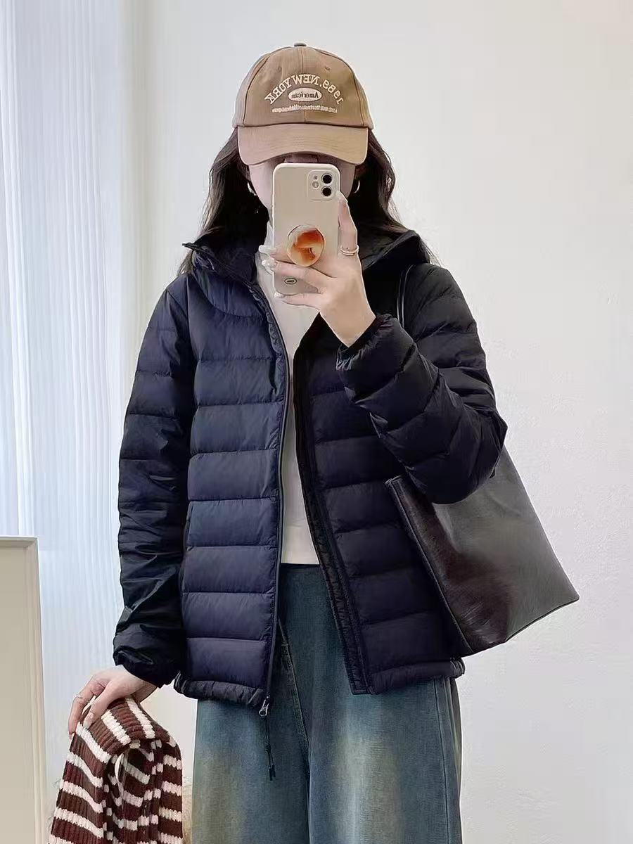 白色排骨羽绒服女短款轻薄90绒白鸭绒连帽秋冬季新款休闲情侣潮牌