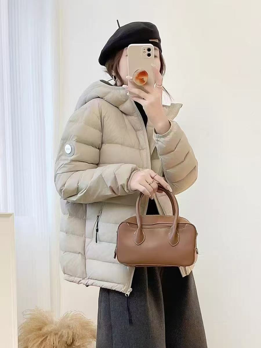小さな正方形のダウンジャケットフード付き厚みのあるファッション 2025 冬ホワイトダックダウン新しいパフパンジャケットホットスタイル
