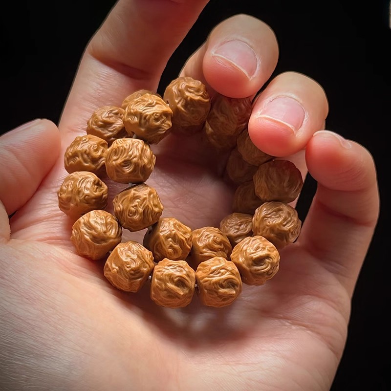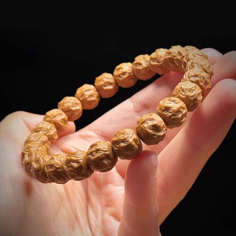 高級古式樽型モンキーヘッドブレスレット、丸型彫刻、フルグレインクルミ、シングルサークル、男女兼用仏教ビーズブレスレット、卸売
