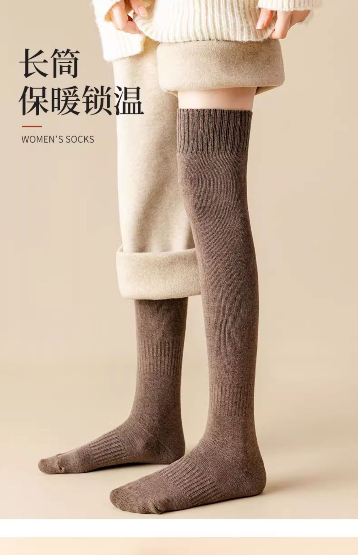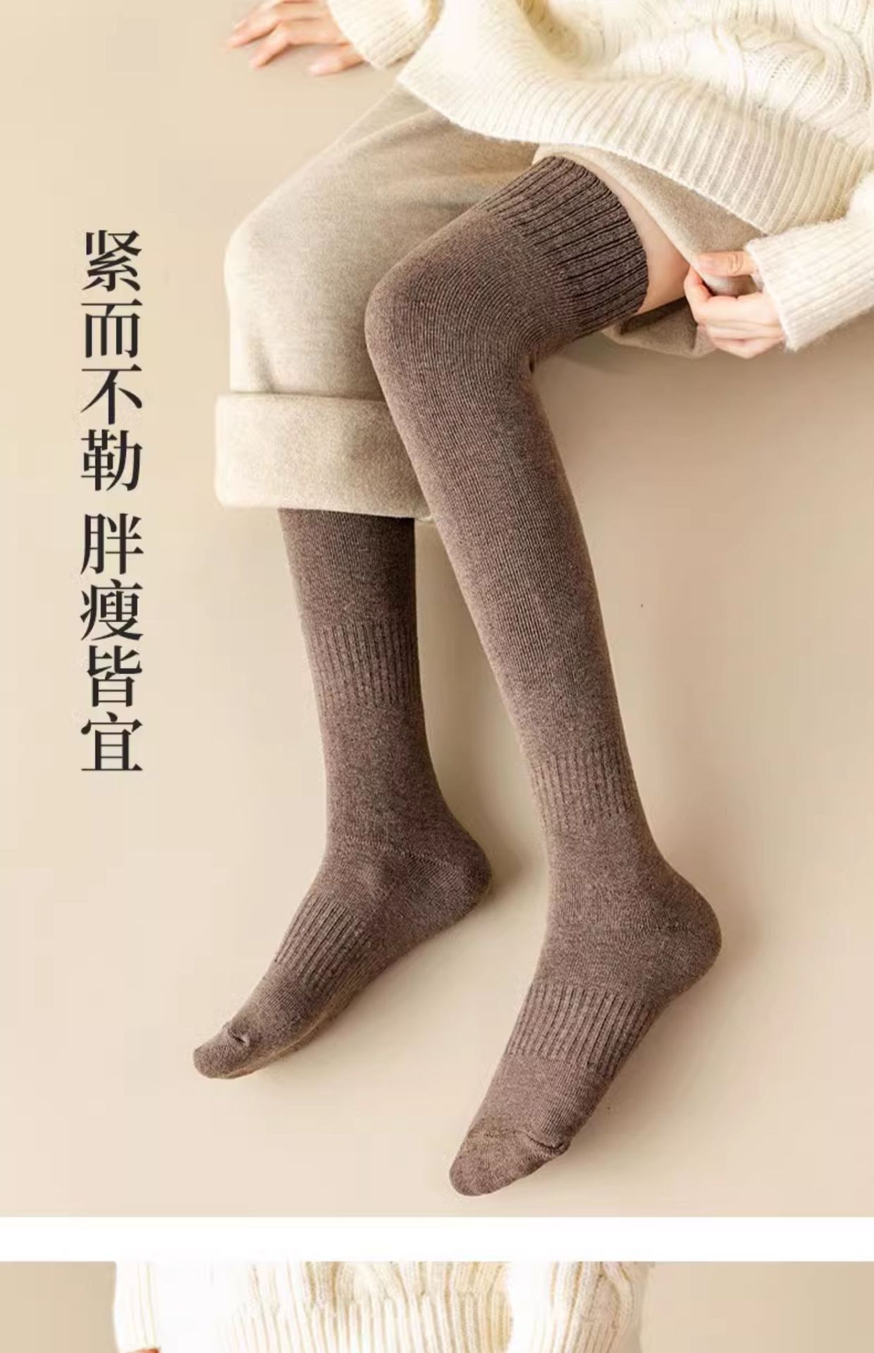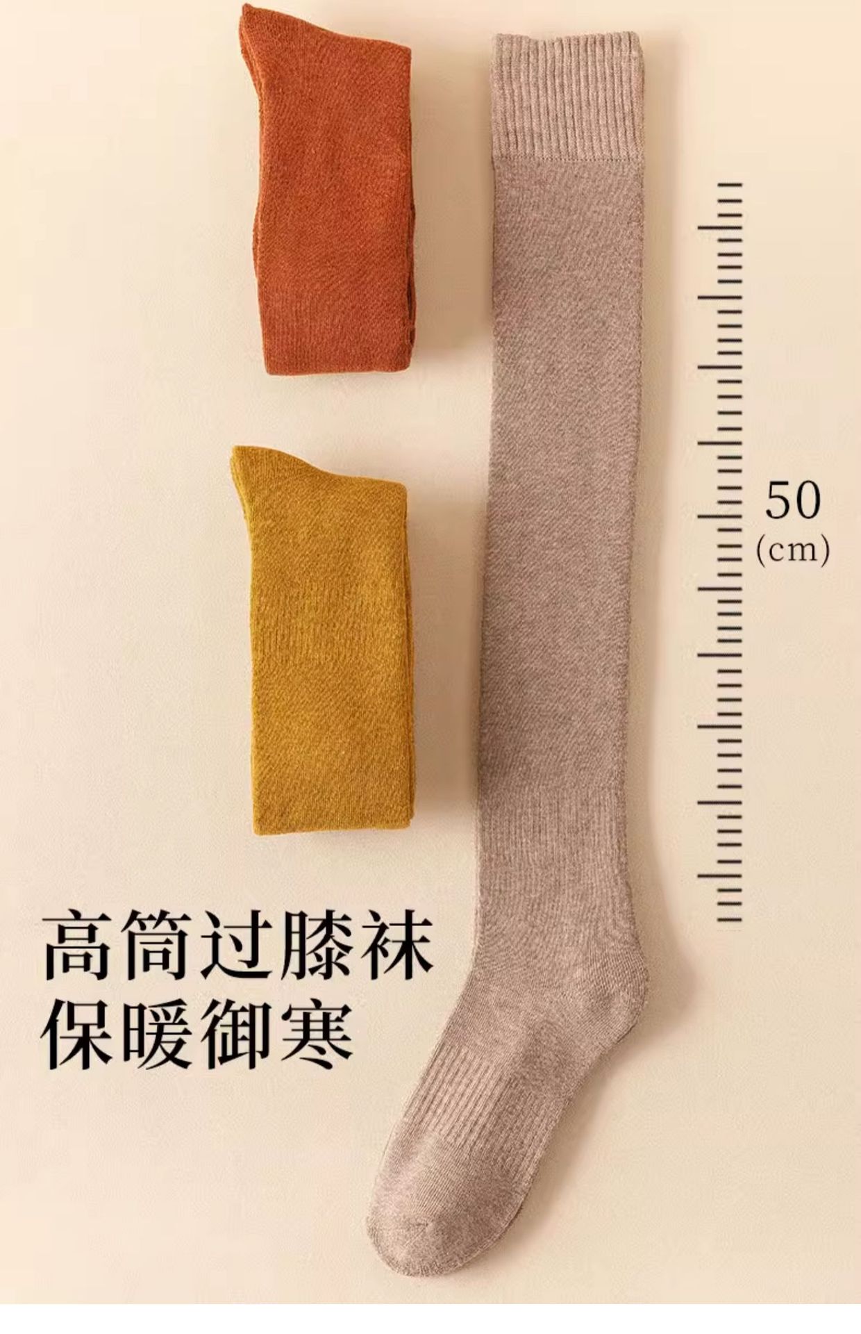 过膝袜子女秋冬款纯棉纱线长筒袜加长保暖高筒防滑护膝大腿袜春秋
