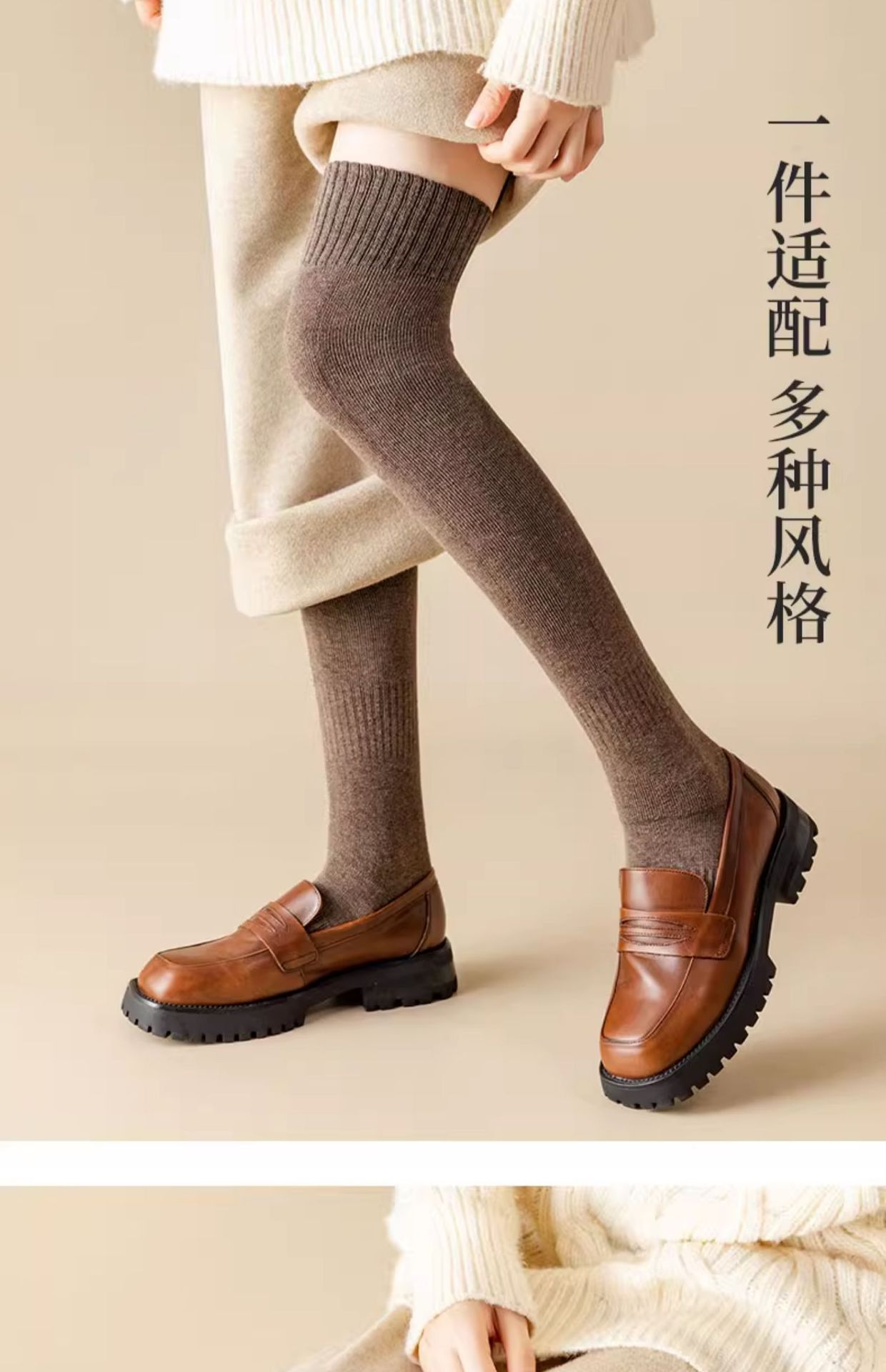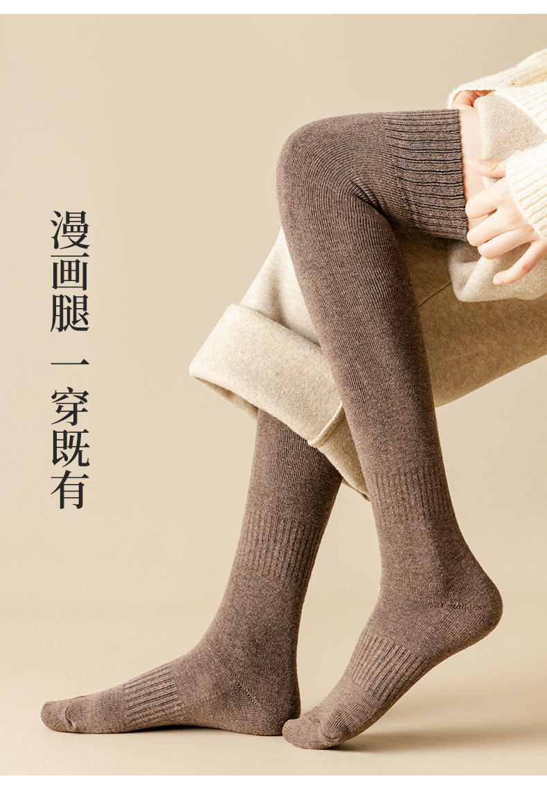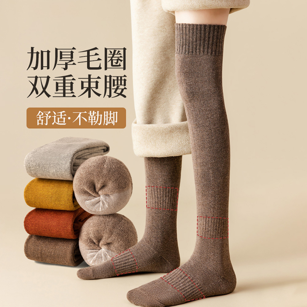 过膝袜子女秋冬款纯棉纱线长筒袜加长保暖高筒防滑护膝大腿袜春秋