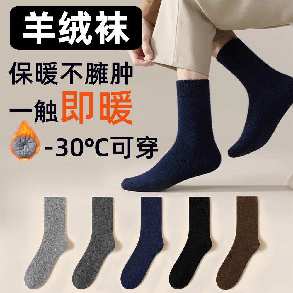ウールソックスメンズ秋冬ミッドカーフソックス厚く暖かいカシミアソックス無地メンズロングソックス冬テリーソックス