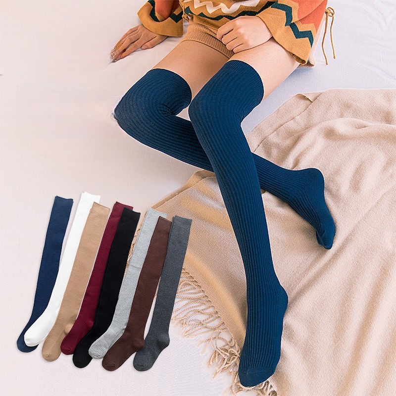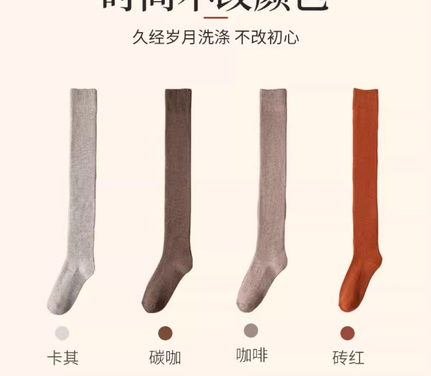 春と秋の綿ストッキング、カジュアルで多用途、トレンディな無地、痩身、滑り止め、膝上ソックス、Zhuji ソックス